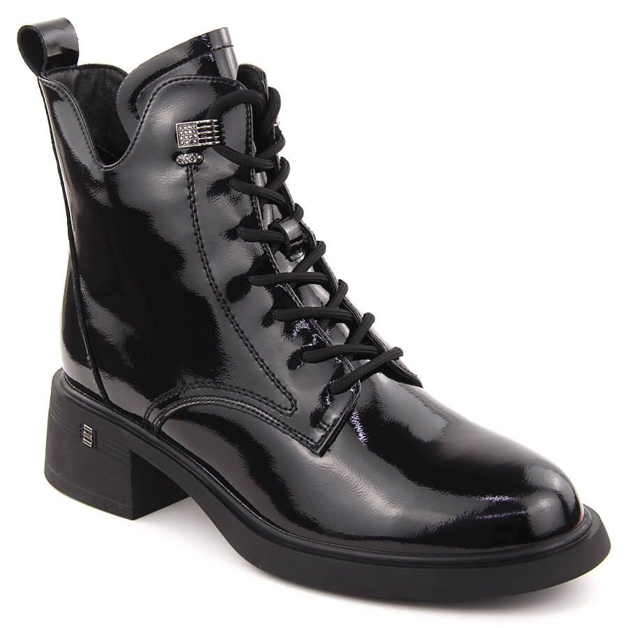 S.Barski Bottines femme en cuir verni noir D&A S.Barski Premium Collection CR42-089 le noir