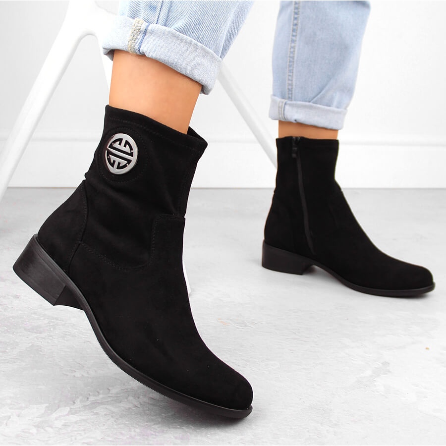 Détails: Bottines femme en daim avec décoration, noir Jezzi ASA198-28 le noir
