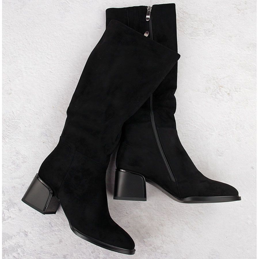 Les bottes en daim féminin sur le bloc noir Filippo DKZ6603 sont un excellent choix pour chaque femme qui veut combiner la mode et le confort. Ces bottes élégantes sont faites de cuir écologique en daim de haute qualité, ce qui leur donne non seulement un look élégant, mais les rend également respectueux de l'environnement. Le haut atteint le genou, qui offre une chaleur et une protection supplémentaires les jours plus frais.
