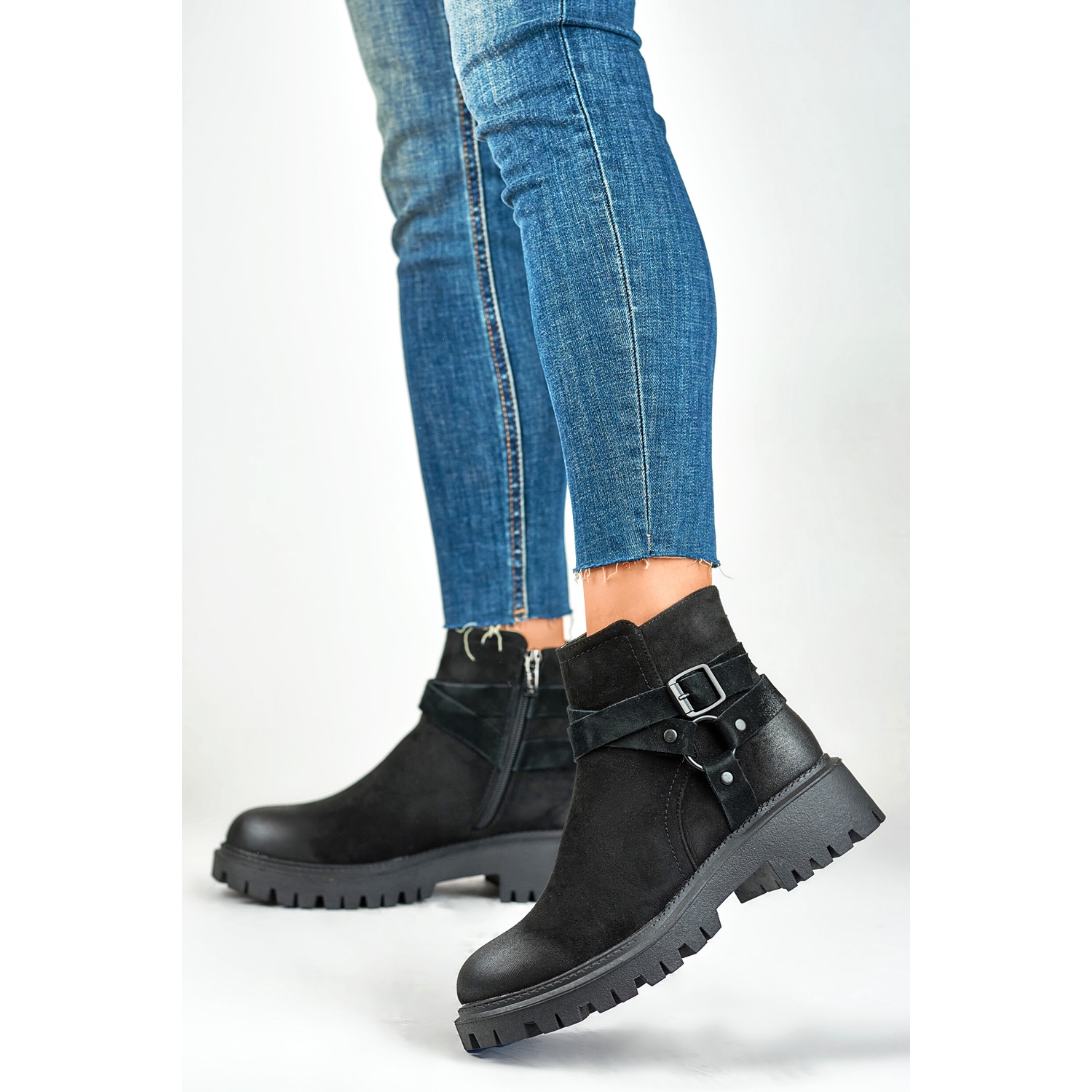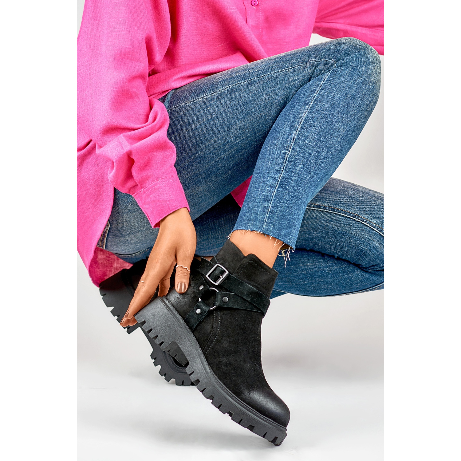 Les bottines noires Aline pour femmes sont un choix élégant pour les journées plus froides. Ils sont fabriqués en daim écologique, ce qui garantit leur aspect élégant. Ils sont ornés d'un décor noir, ce qui leur confère un caractère unique. Le gros avantage de ces chaussures est l'isolation qui vous garde au chaud pendant les journées les plus froides. Les bottes sont également confortables grâce à l'insert en tissu et à la largeur standard.