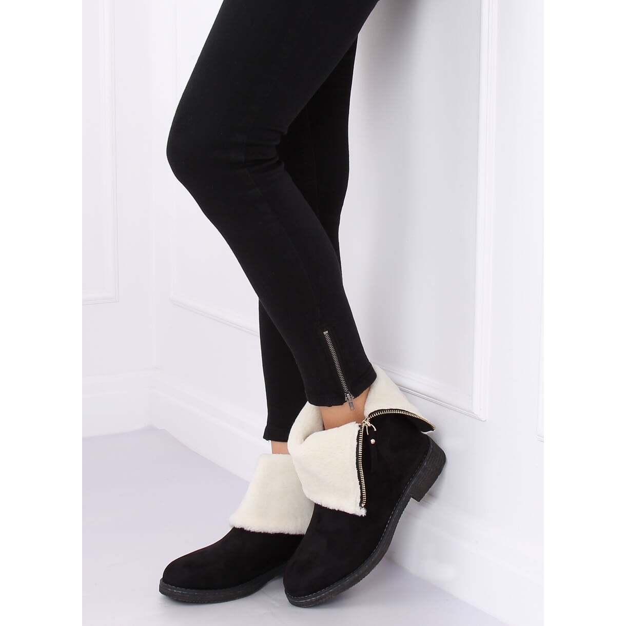 Les bottines pour femme S118 Black sont le choix parfait pour les journées glaciales, alliant style et confort. Fabriquées en daim écologique d'une élégante couleur noire, ces bottines isolées attireront certainement l'attention par leur design original. Une élégante fermeture éclair dorée et une fourrure dépassant de la tige ajoutent non seulement du caractère aux chaussures, mais fournissent également une chaleur supplémentaire.