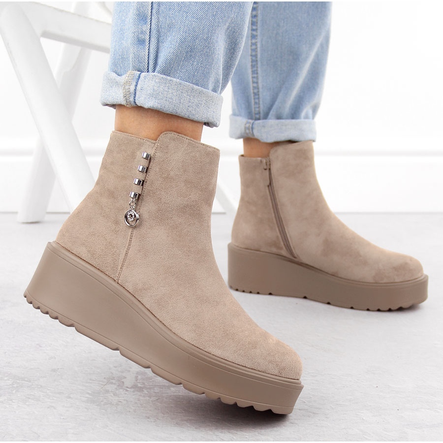 Détails: Bottines femme en daim sur plateforme épaisse, beige Potocki 11305
