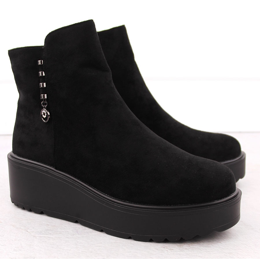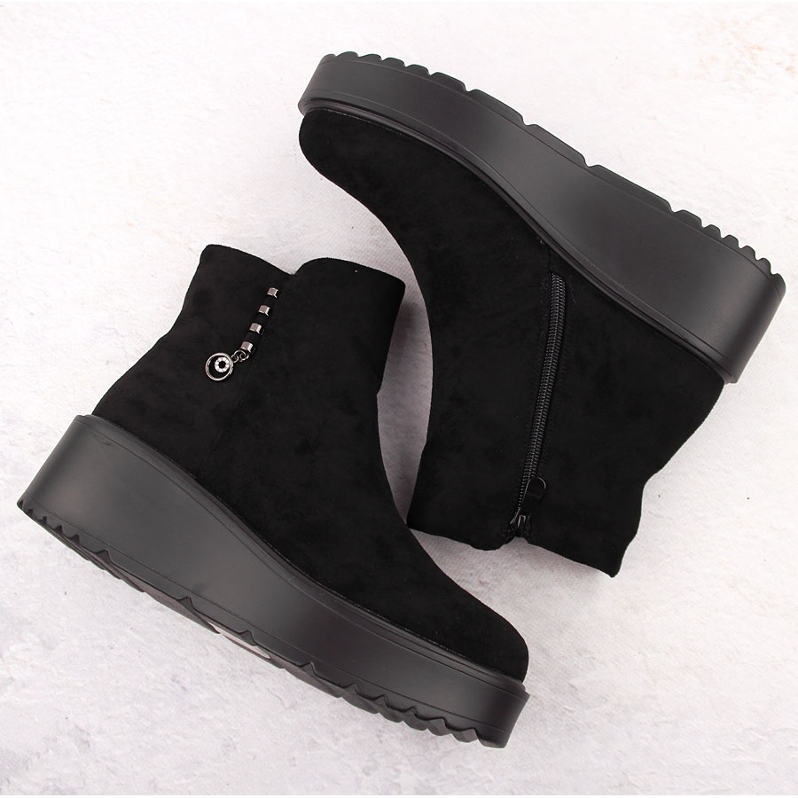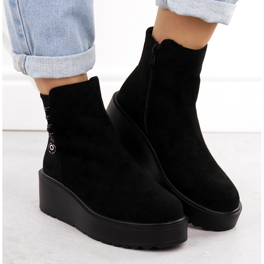 Détails: Bottines femme en daim sur plateforme épaisse, noir Potocki 11305 le noir