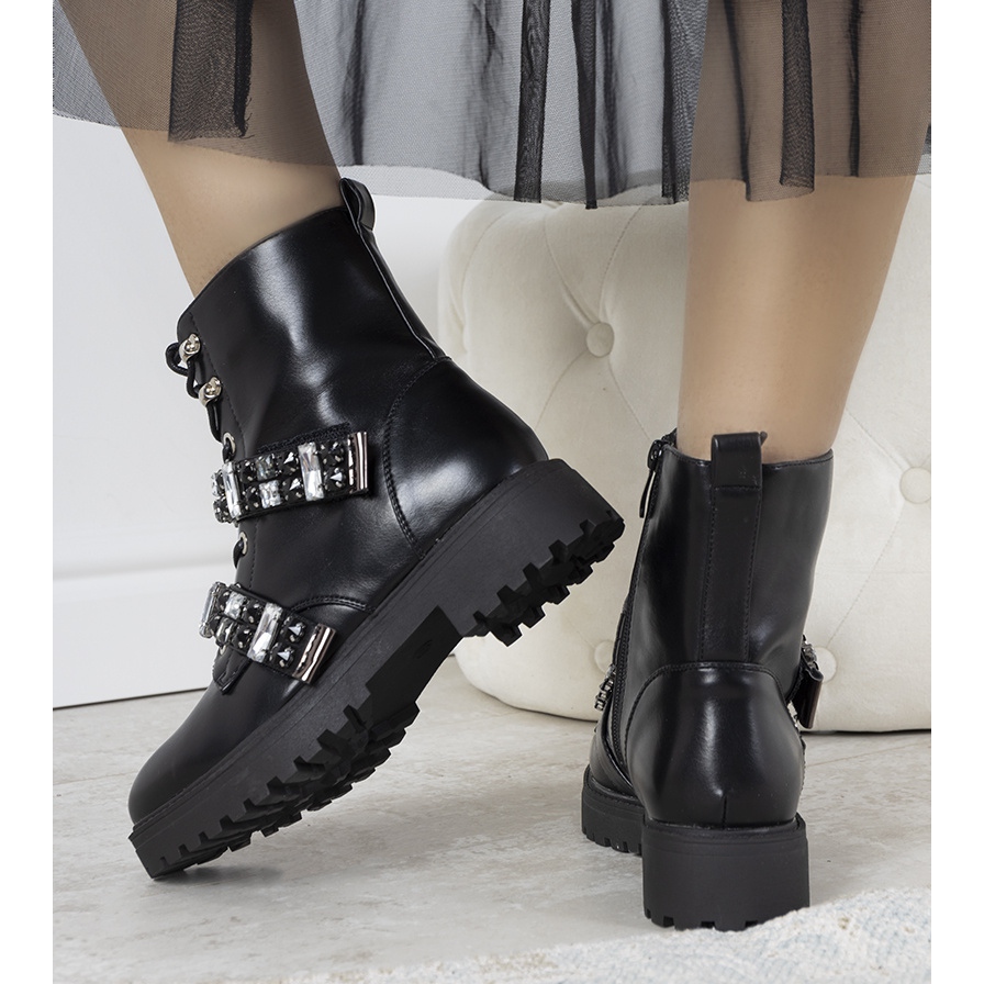 Les bottines noires pour femme Fifine sont un incontournable de toute garde-robe automne-hiver. Ces chaussures élégantes séduisent non seulement par leur aspect élégant, mais aussi par leur souci du détail. Décorés de belles pierres et zircons, ils attirent l'attention et ajoutent de la classe à n'importe quel style.