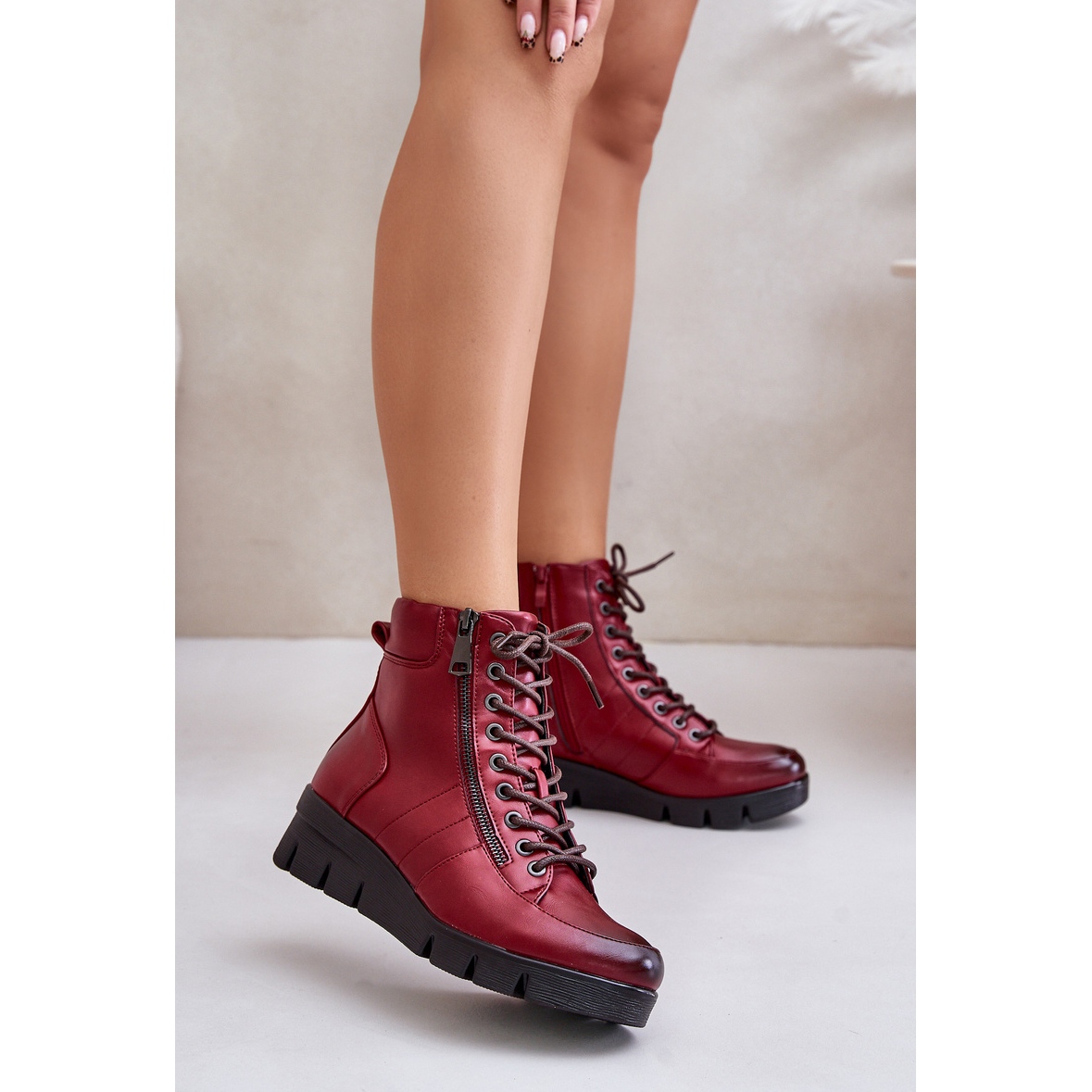 Inna marka Bottines femme légères et isolées sur plateforme et compensée, bordeaux, Savindria rouge