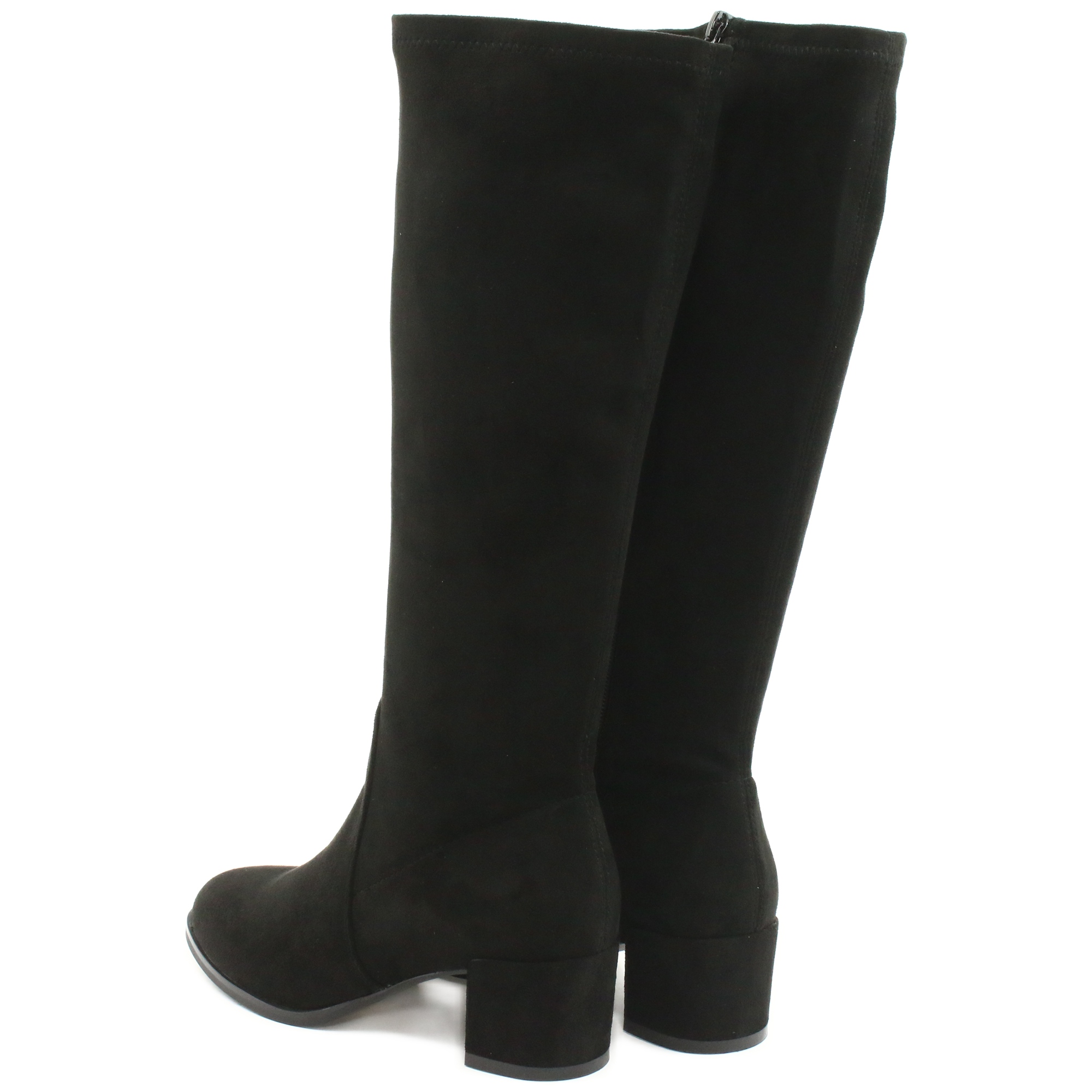 Les bottes sont fabriquées en daim Lycra élastique, qui assure un ajustement parfait aux jambes et un confort de port tout au long de la journée. Une fermeture éclair supplémentaire facilite l'enfilage et le retrait des chaussures, ce qui constitue une solution extrêmement pratique pour un usage quotidien.