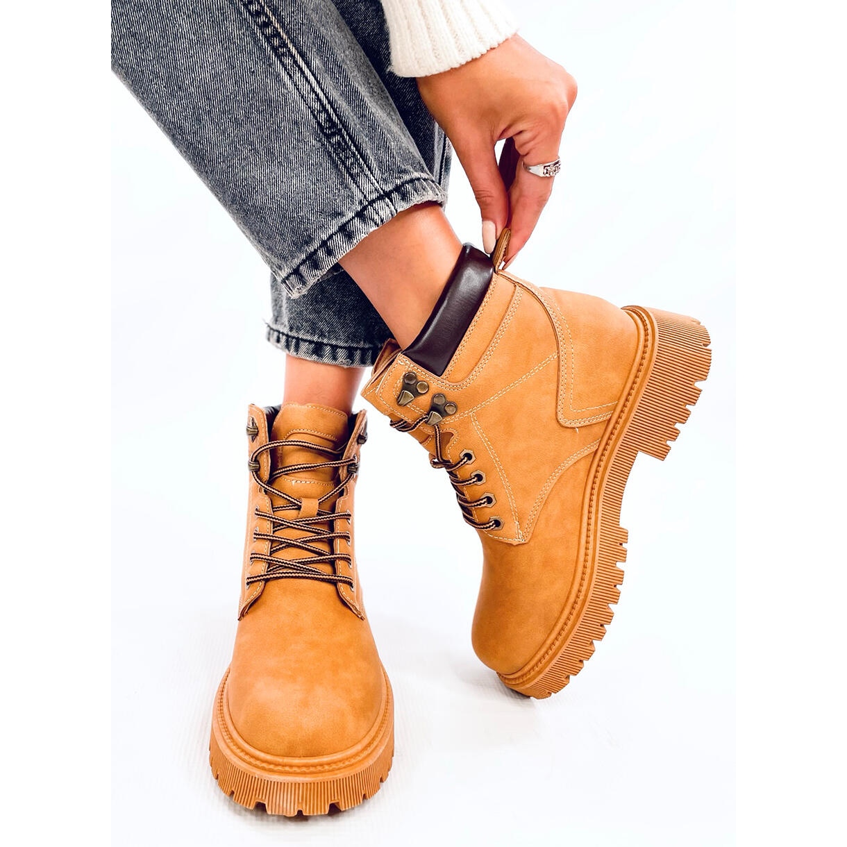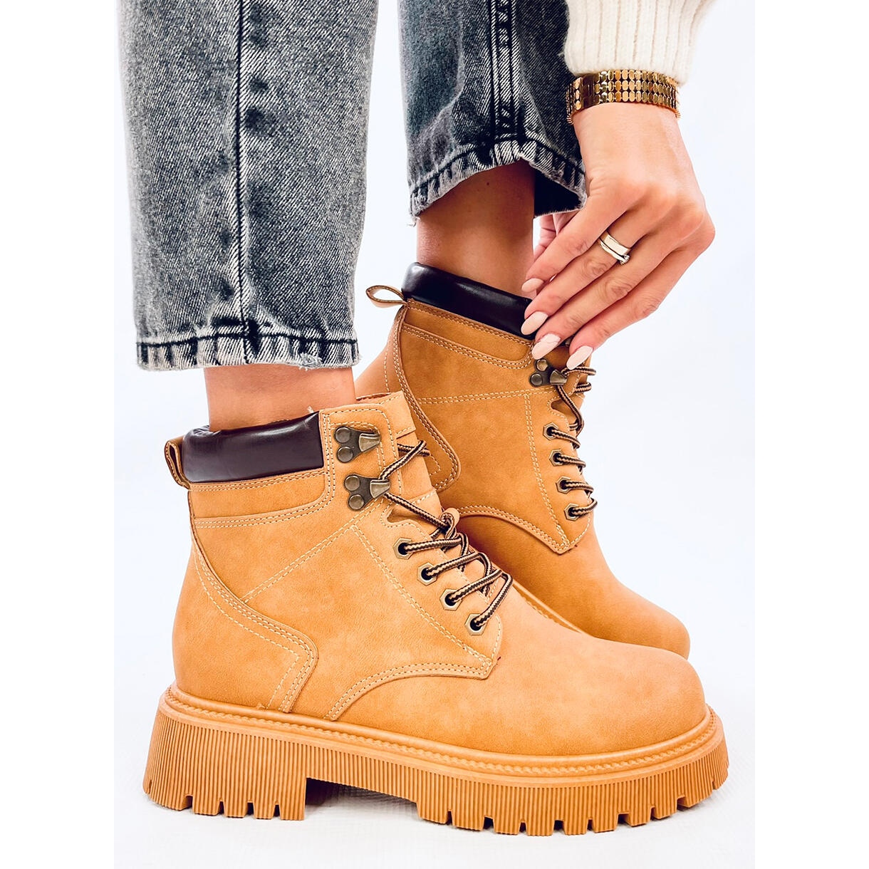 Fabriquées en cuir écologique de haute qualité, ces trappeurs sont non seulement esthétiques, mais aussi respectueuses de l'environnement. L'intérieur des chaussures est isolé d'une fourrure délicate, ce qui en fait un compagnon idéal les jours plus frais, en prenant soin de vos pieds. Grâce au talon plat, qui mesure 4 cm de haut, vous pouvez profiter d'un maximum de confort pendant les longues promenades ou l'errance de la ville.
