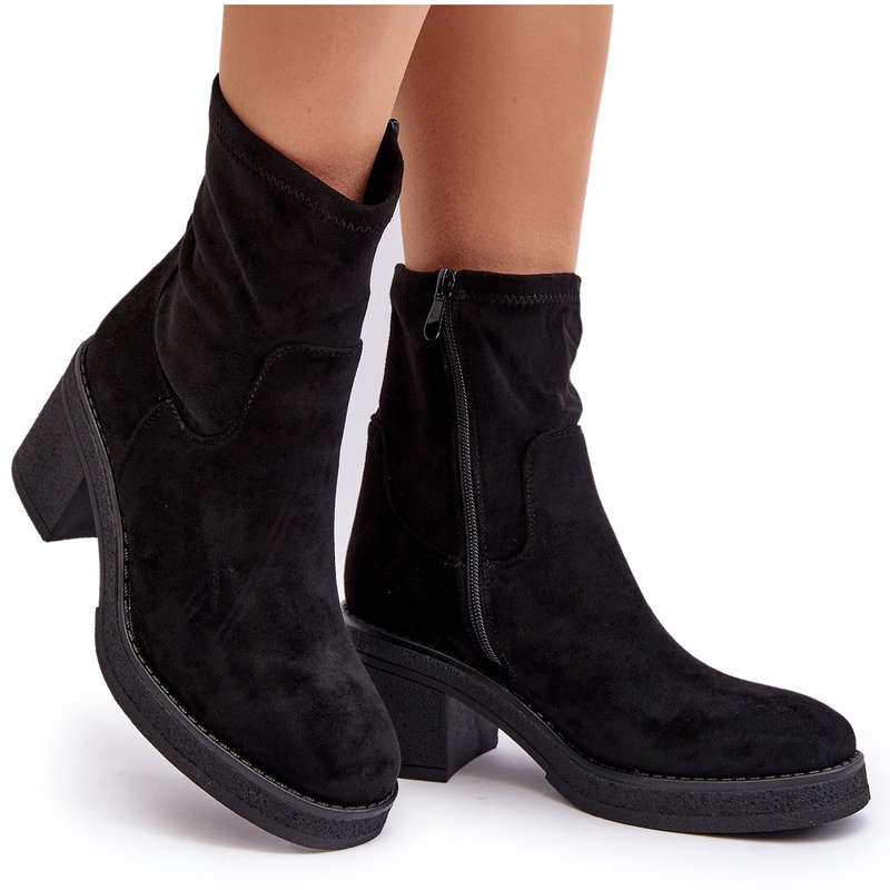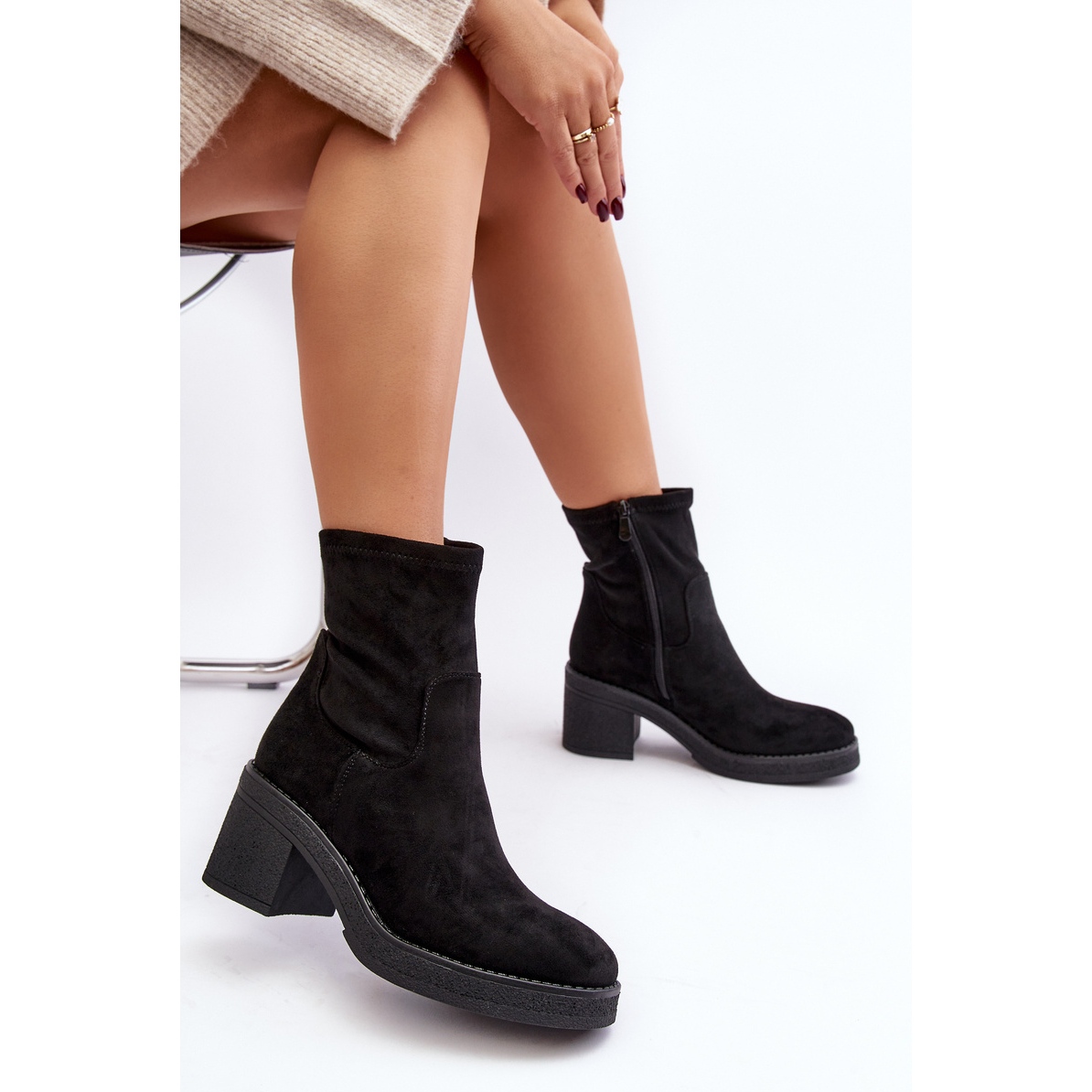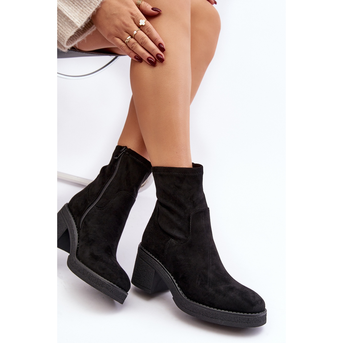Les orteils arrondis attirent une attention particulière, qui sont non seulement à la mode, mais aussi confortables, donnant plus d'espace aux doigts. L'intérieur de la chaussure est partiellement isolé avec une couverture pour chaussures, qui offre une protection et une chaleur supplémentaires par temps froid. La fermeture éclair permet d'enfiler et d'enlever facilement et rapidement les bottes, ce qui est particulièrement utile dans la vie dynamique d'une femme moderne.