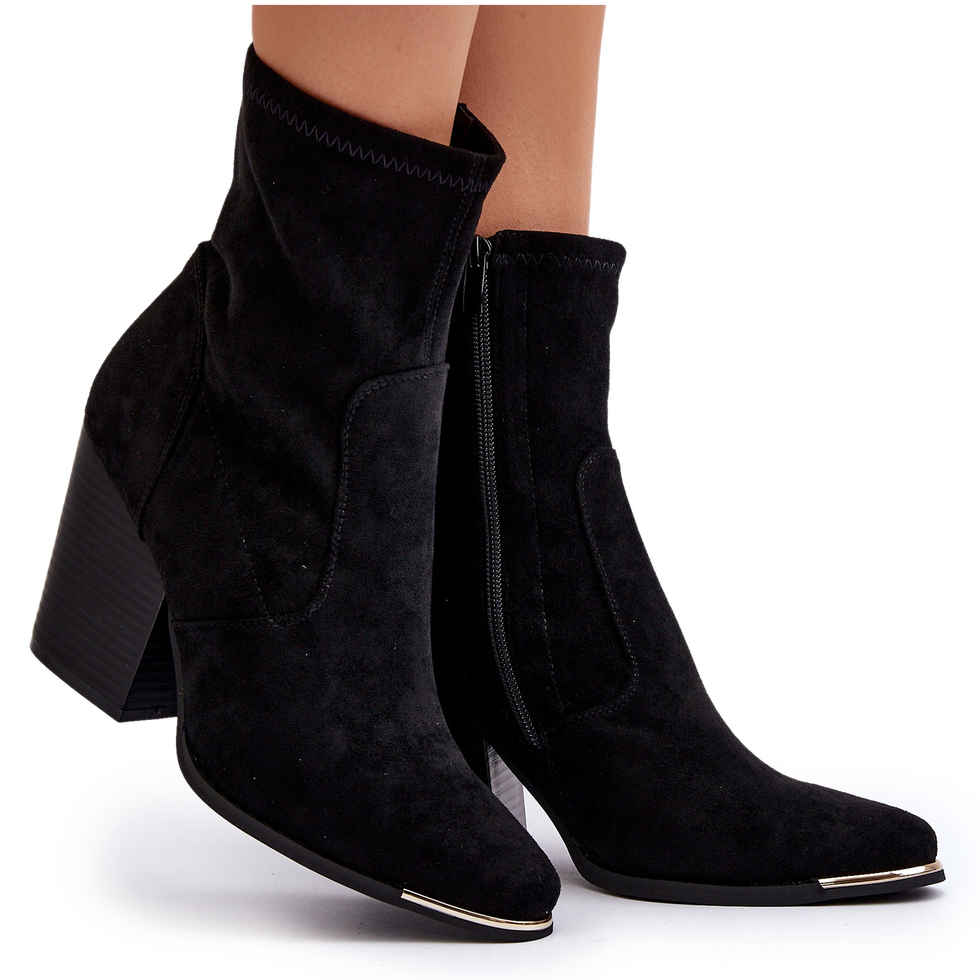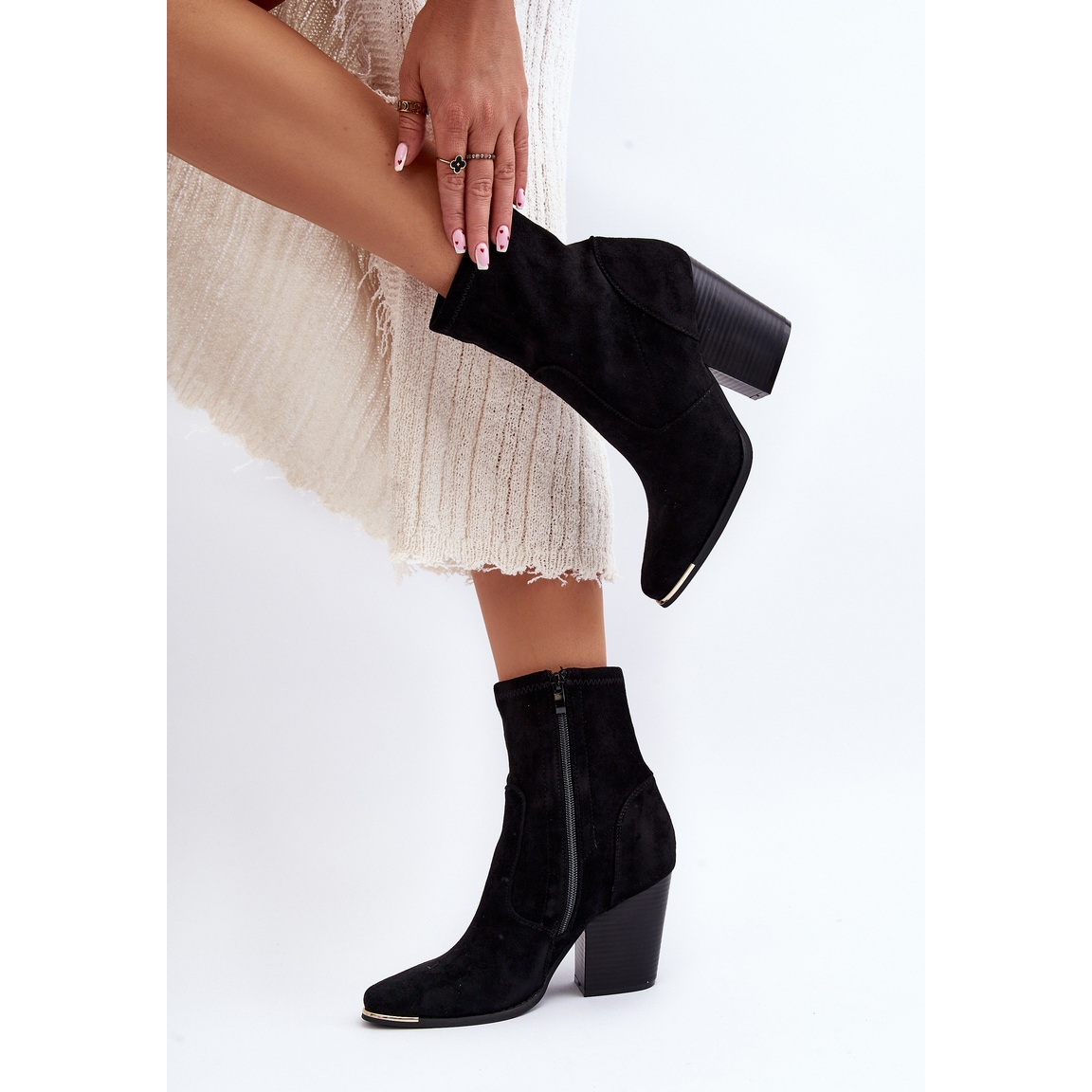 Les bottines pour femmes noires Sanile sont une proposition unique pour les femmes qui apprécient la combinaison de l'élégance et du confort. Fabriquées en cuir suédé écologique de haute qualité, ces chaussures seront un ajout élégant à toute garde-robe. Basées sur un montant stable de 9 cm de hauteur, les bottes assurent un confort de port même pendant une longue période. De plus, leurs dimensions (hauteur supérieure : 15 cm, largeur supérieure : 10,5 cm) permettent aux chaussures de s'adapter parfaitement à la jambe, et leur couleur noire classique les rend faciles à assortir avec de nombreuses tenues.