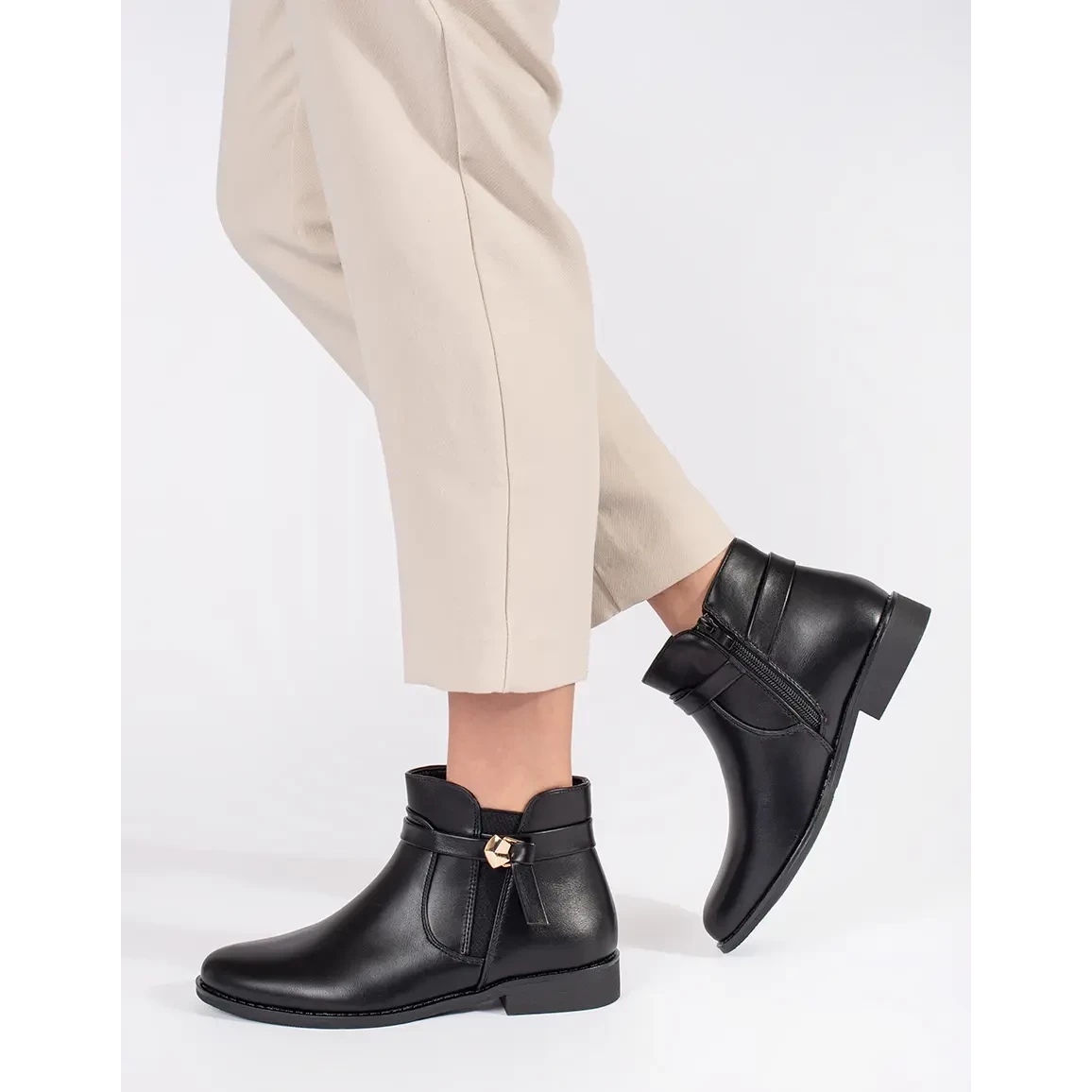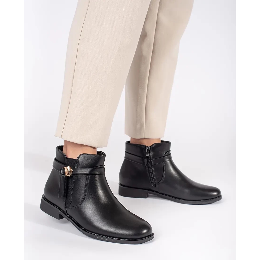 Nous présentons des bottes élégantes pour femmes noires avec une ceinture à thèmes basses, qui combinent le design à la mode avec un confort élevé. Ces bottes, produites par une marque renommée, seront un complément parfait à chaque stylisation décontractée, parfaite chaque jour, en particulier en automne et en hiver.