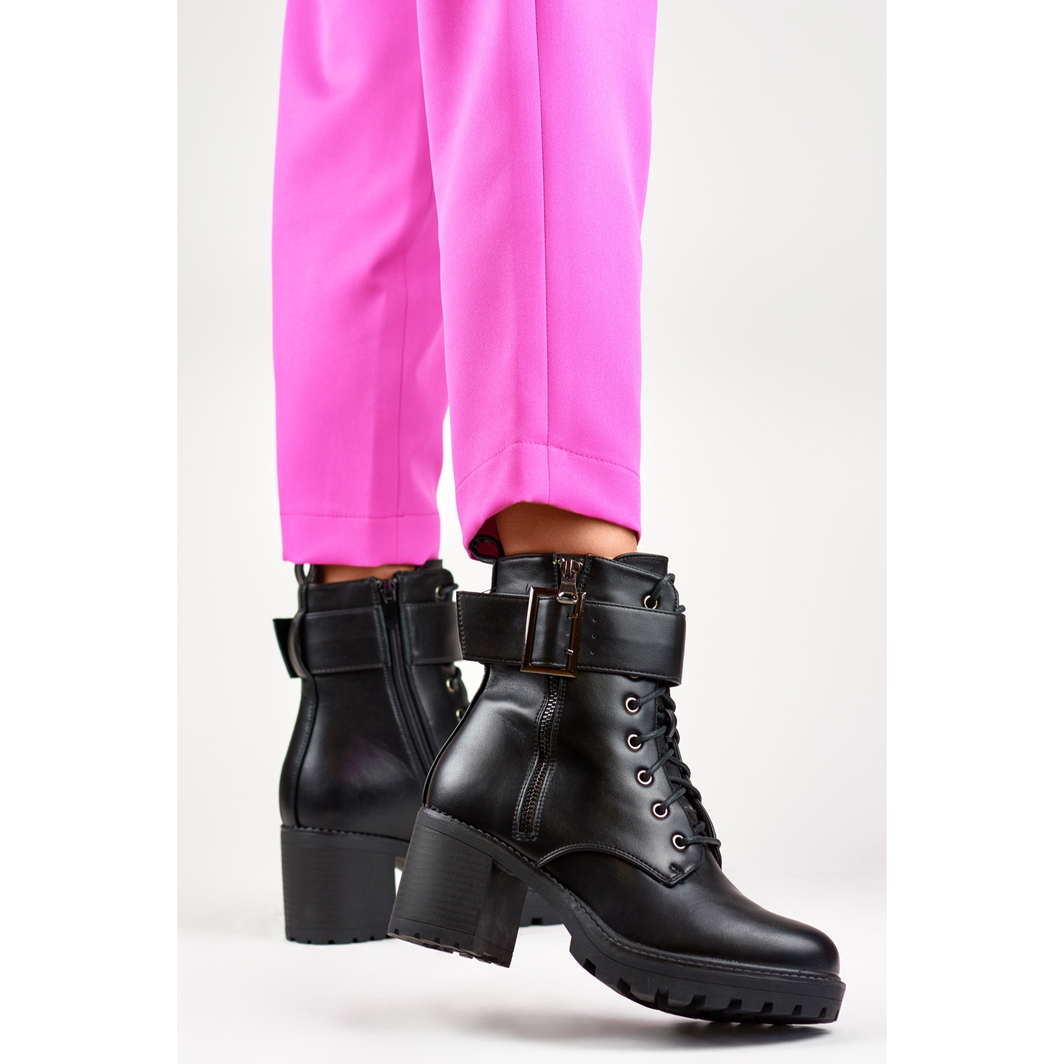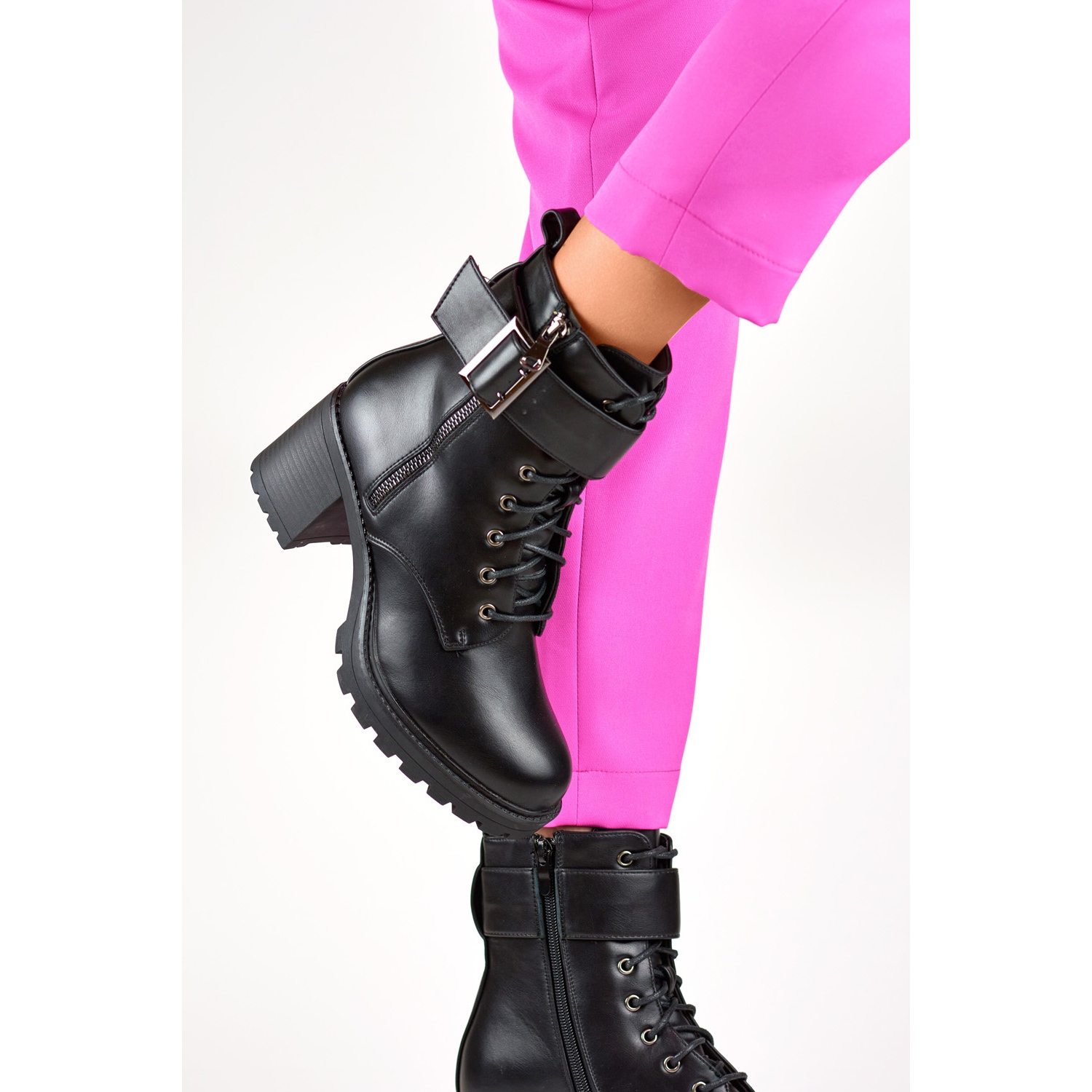 Ces bottines à talons hauts pour femme sont un choix élégant pour la saison automne/hiver. Ils sont fabriqués en cuir écologique de haute qualité, ce qui assure leur résistance aux diverses conditions météorologiques. Leur couleur est le noir classique, ce qui les rend parfaitement assortis à différents styles.