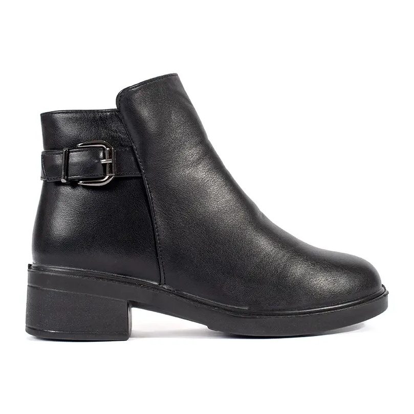 Détails: Bottines femme noires à petit talon et boucle décorative