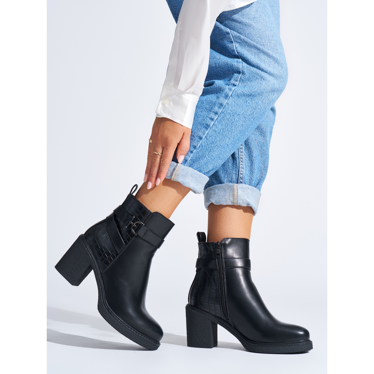 La hauteur du pilier de 7,5 cm rend les chaussures confortables même pendant tout le port, offrant la hauteur appropriée, qui allonge optiquement les jambes. Un avantage supplémentaire est la fermeture éclair, qui permet de mettre et de décoller faciles.