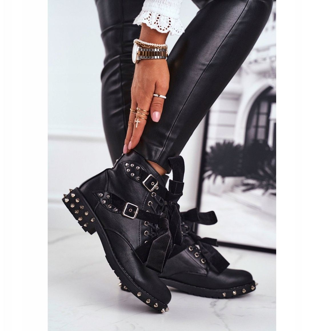 Détails: SEA Bottines Femme Rivets Spikes Noir Aimant