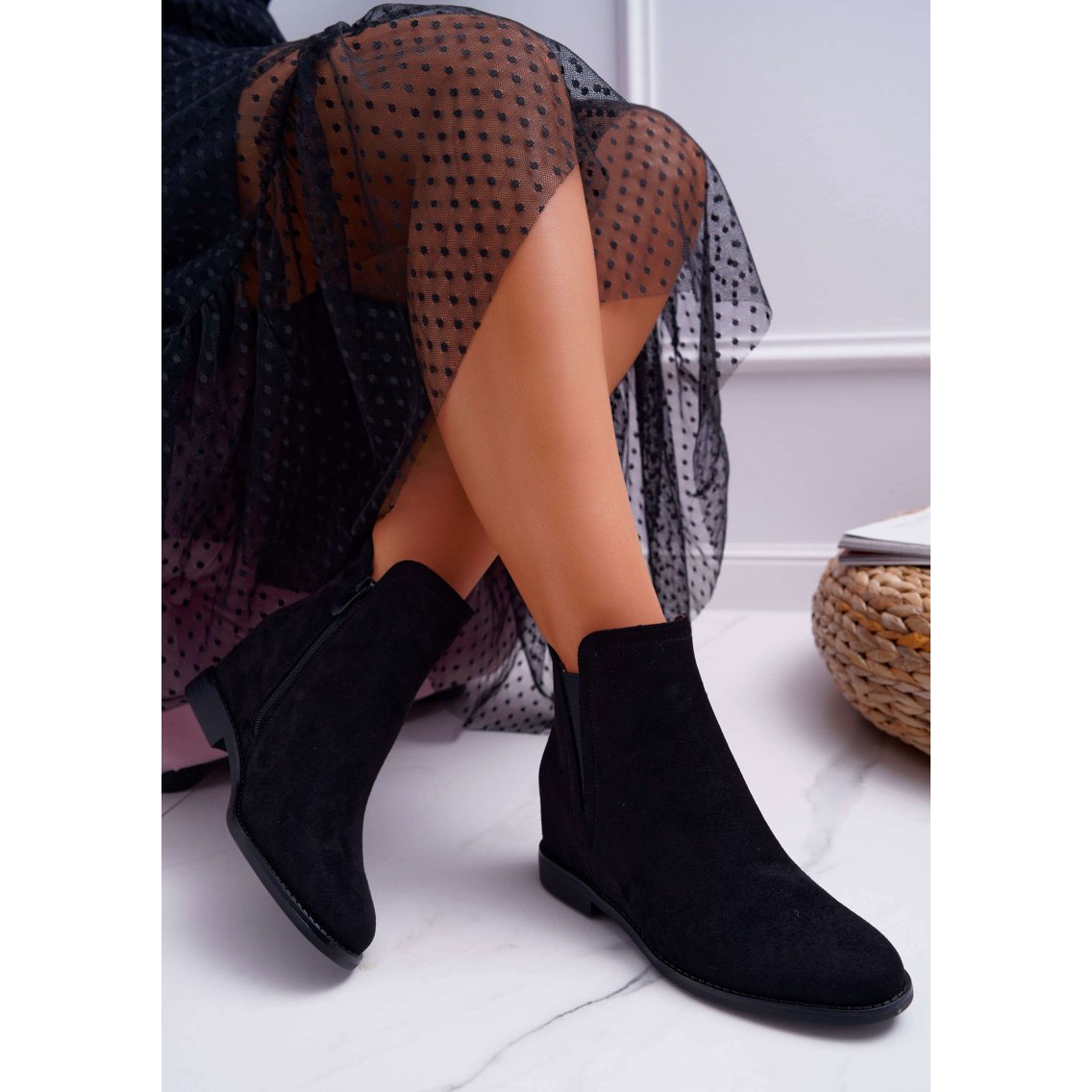 Découvrez l'élégance et le confort les jours d'automne avec les bottines compensées pour femme de la marque BUGO. Le modèle "Tema" est une option idéale pour les femmes qui souhaitent allier look tendance et confort. Fabriquées en daim écologique de haute qualité dans une couleur noire classique, ces bottes sont un complément parfait à tout style, à la fois décontracté et plus élégant.
