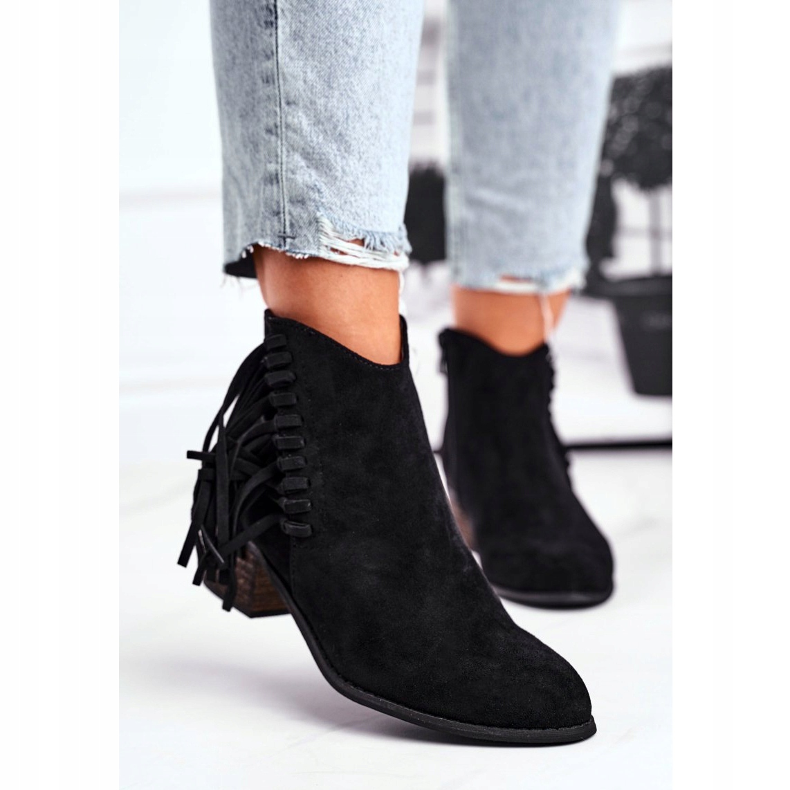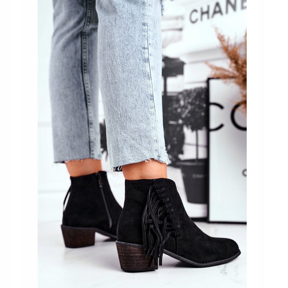 Détails: Bottines Femme Talon Avec Franges Bottines Cowboy Mirage Noir le noir