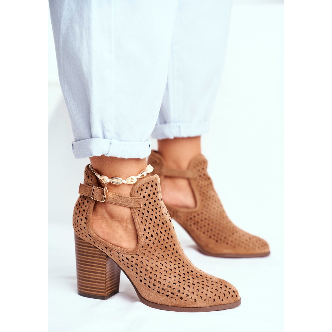 Nous vous présentons les bottines pour femmes en éco-daim dans la teinte camel de la marque Morrena. Ces chaussures élégantes sont un choix parfait pour les journées de printemps et d'été, s'associant parfaitement aux robes aérées et aux pantalons en jean.