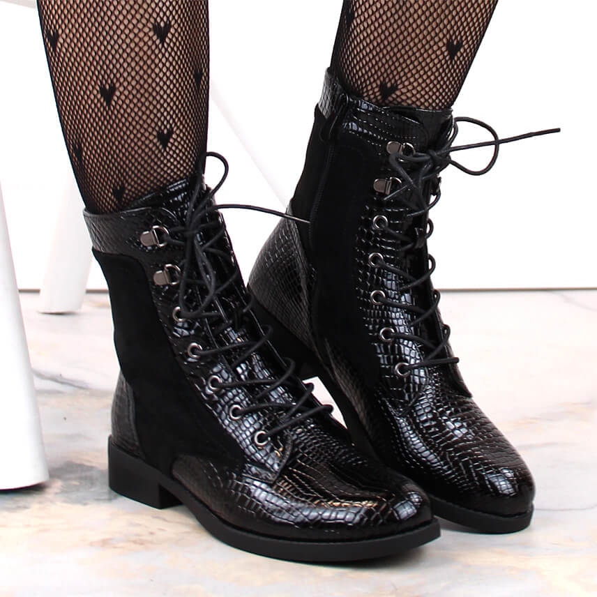 Bottines à talon plat pour femme style croco : chaleur et style pour les journées froides