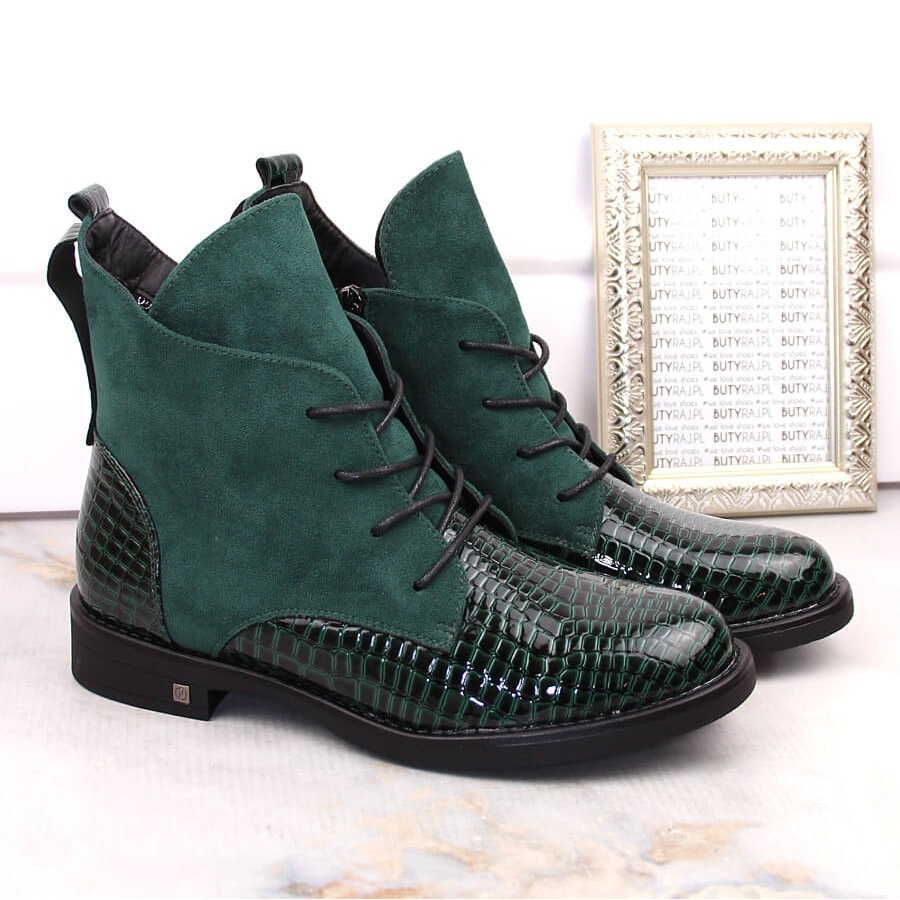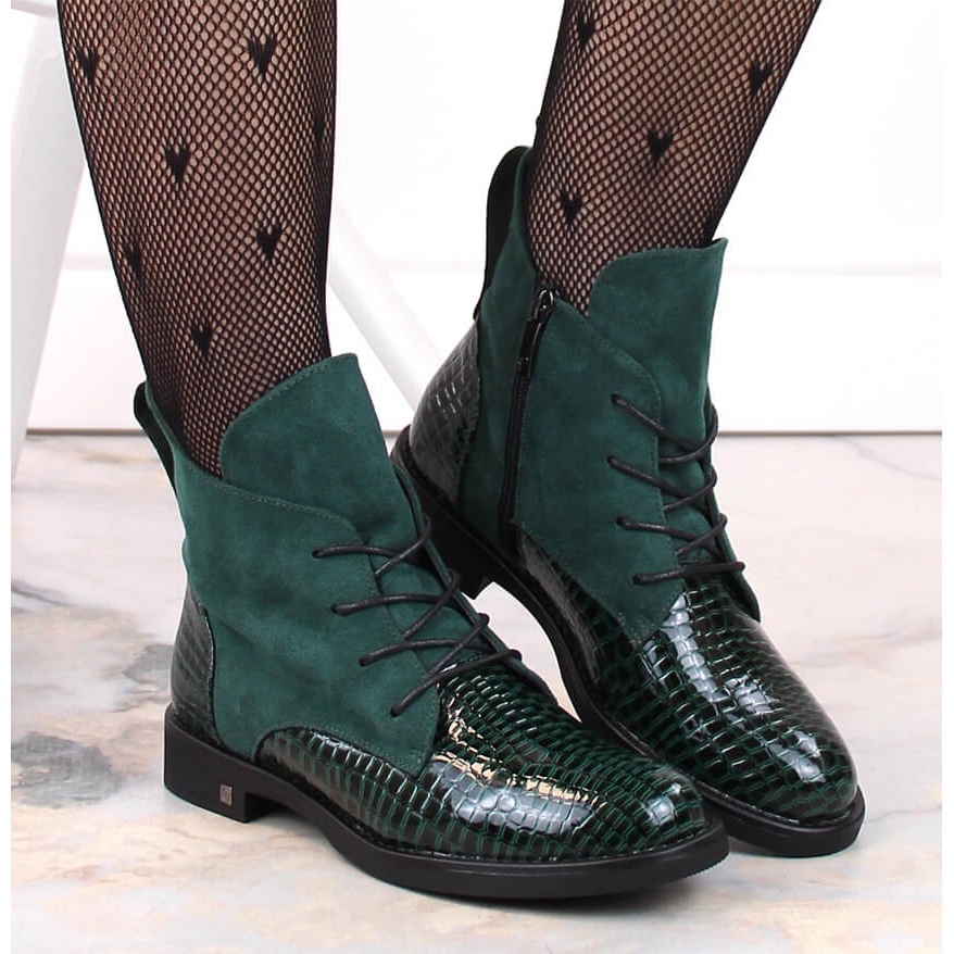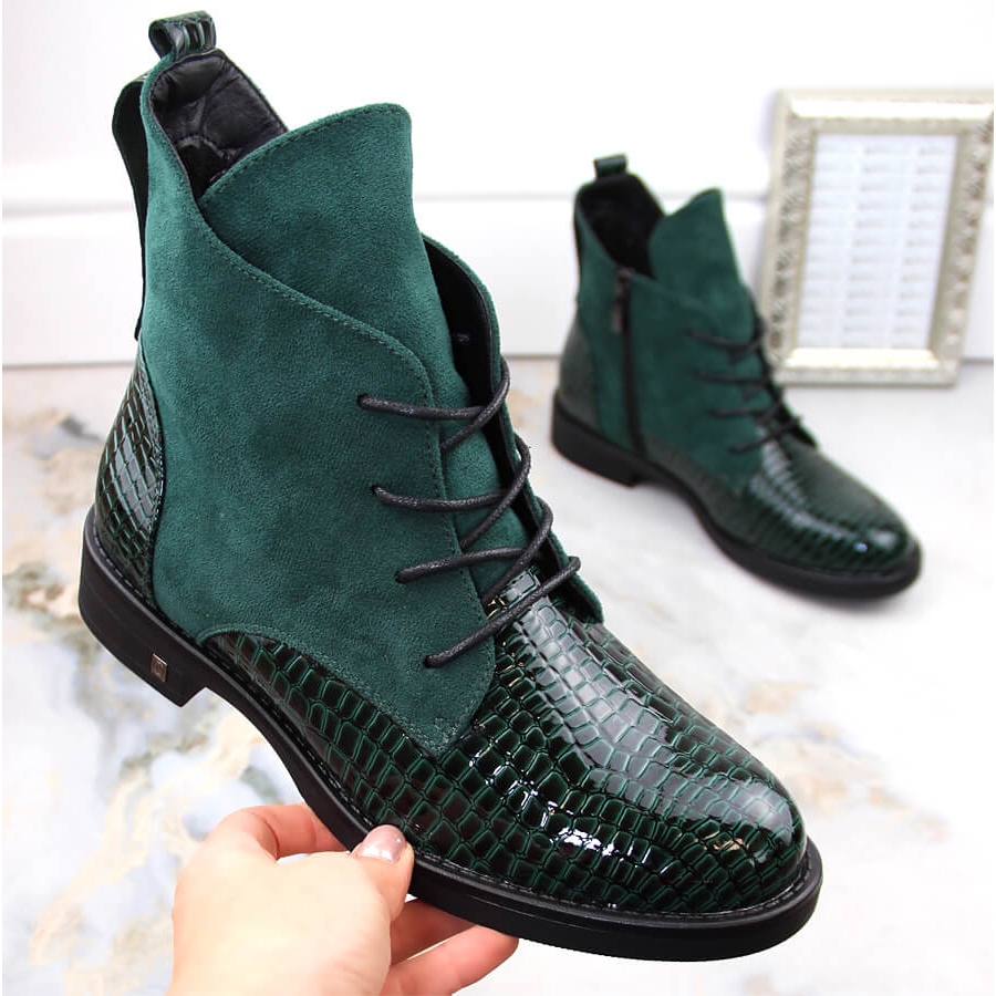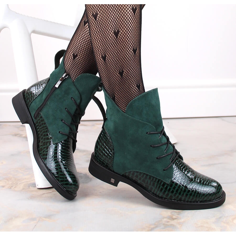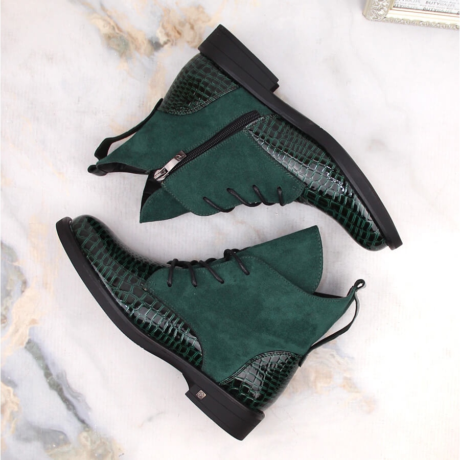 Détails: Bottines femme talon plat, isolées, vertes Potocki SZ12080