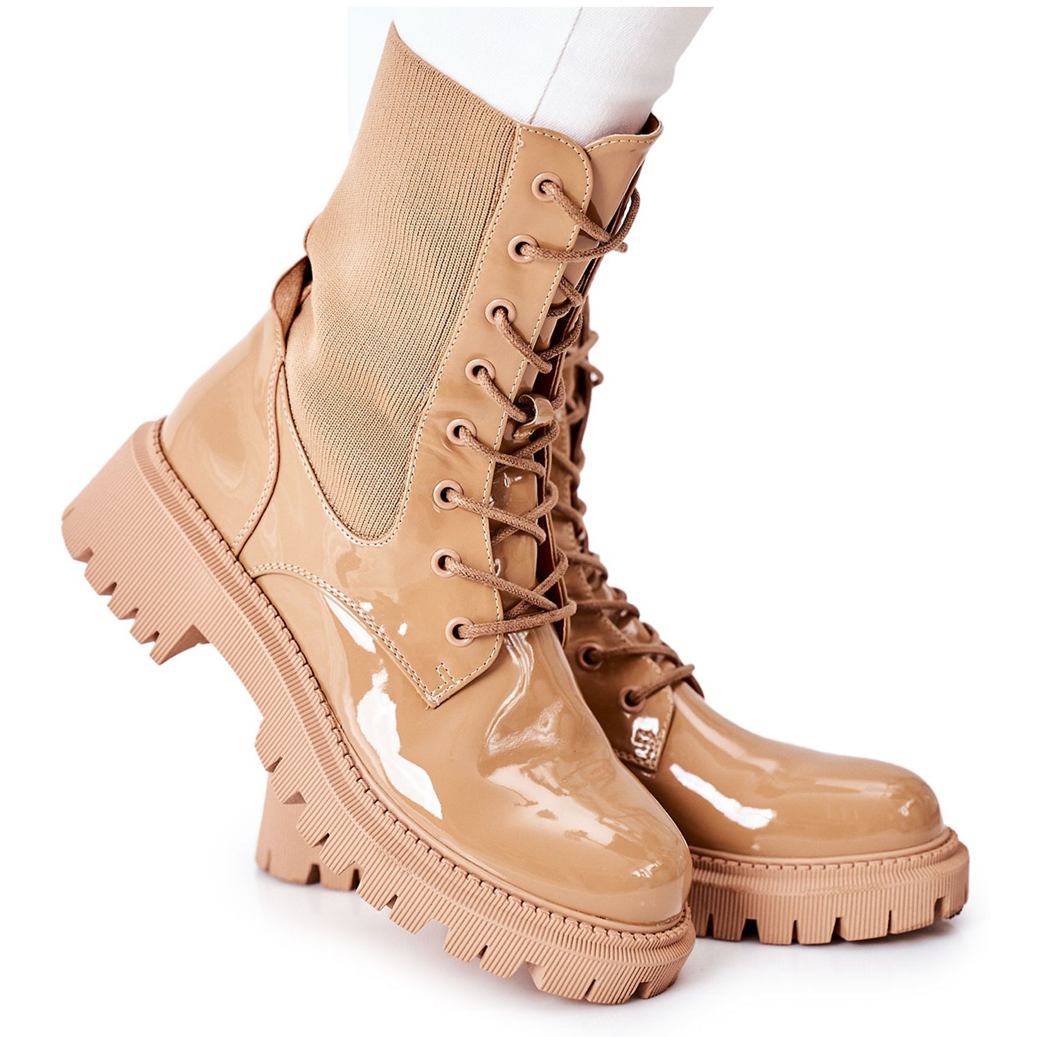 Fabriquées en cuir écologique verni, elles se caractérisent par une tige haute et extensible qui s'adapte parfaitement à la jambe grâce à des bandes élastiques cousues sur les côtés. Le laçage classique permet un ajustement encore meilleur tout en assurant un confort de port.