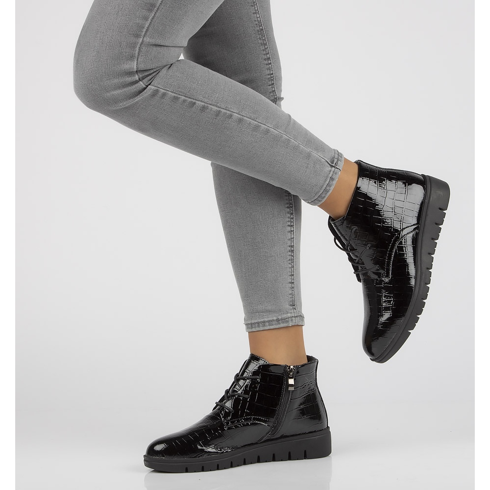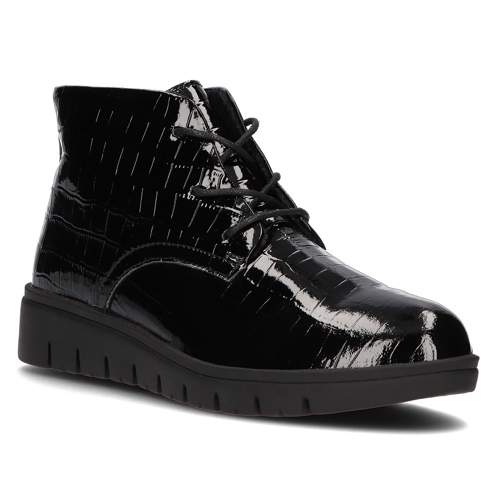 Les bottes sont fabriquées en cuir naturel de haute qualité, ce qui garantit non seulement la durabilité, mais aussi le confort de port. Le bout rond et la tige de 9,5 cm à hauteur de cheville s'adaptent parfaitement à la jambe, et la fermeture à lacets permet un ajustement facile au pied. De plus, l’isolation rendra vos pieds confortables même les jours les plus froids.