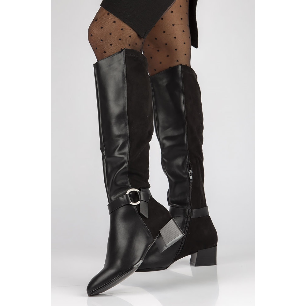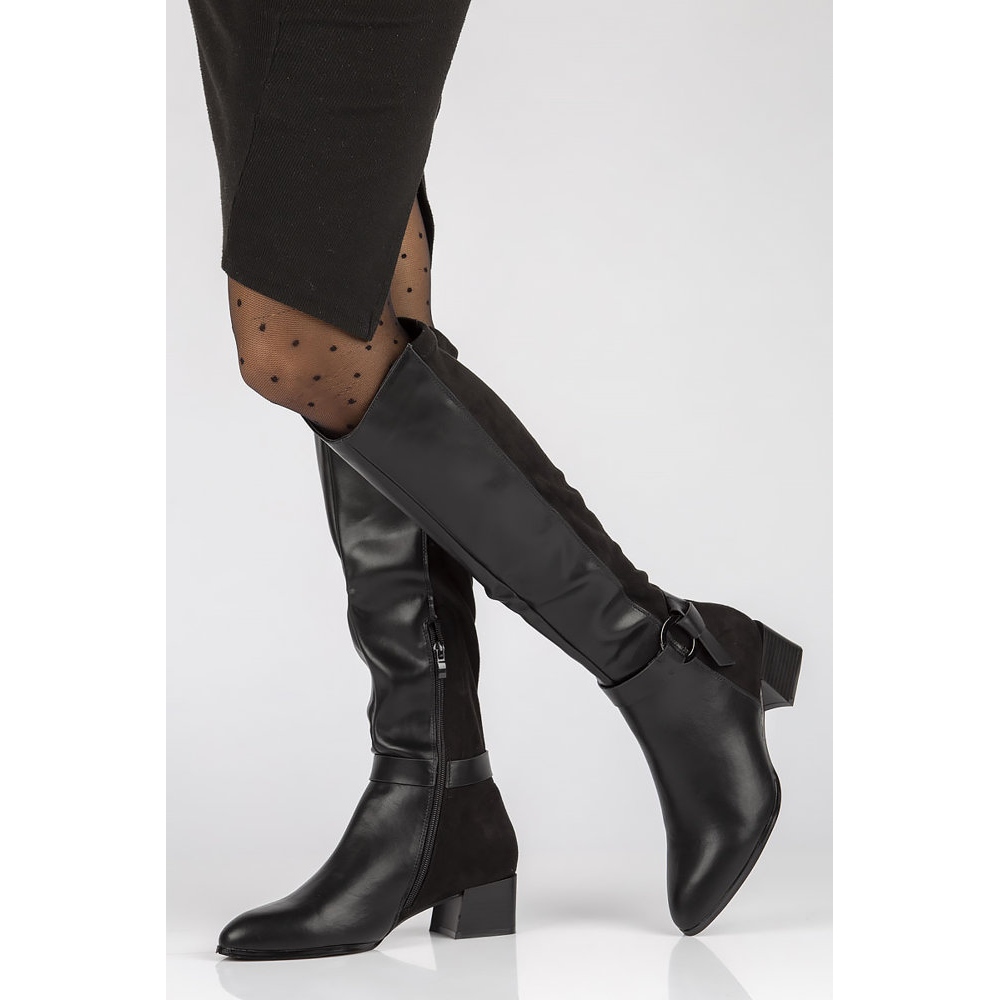 Les bottes ont un bout rond et une fermeture éclair, ce qui les rend faciles à enfiler et à enlever. La hauteur supérieure est de 40 cm et atteint le genou, ce qui les rend parfaits pour de nombreuses tenues, aussi bien au quotidien que pour des occasions plus formelles. Grâce à l'isolation et à la doublure en matériau, vos pieds se sentiront à l'aise même les jours les plus froids.
