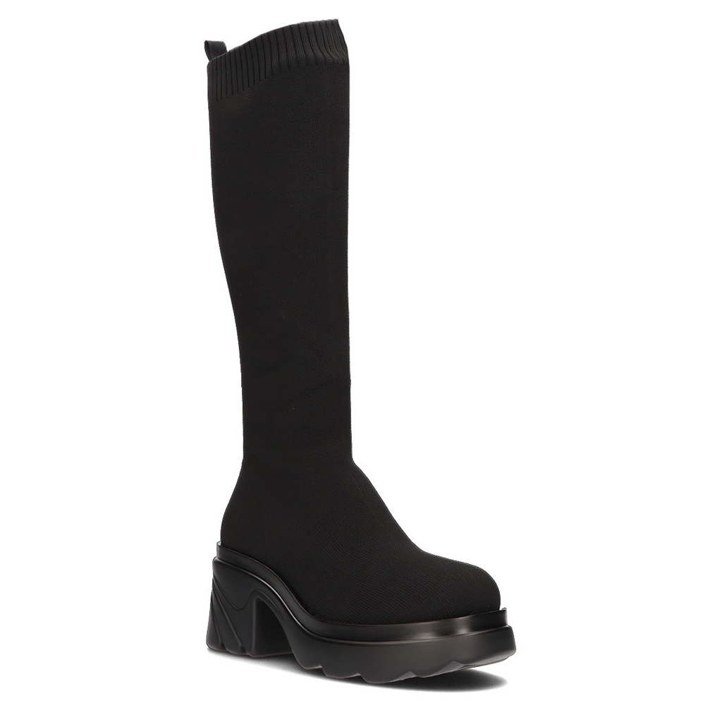 L'intérieur des chaussures est doublé d'une doublure en tissu, qui assure le confort, tandis que la semelle intérieure en tissu s'adapte à la forme du pied. La circonférence supérieure de 41 cm permet aux bottes de s'adapter parfaitement au mollet, soulignant la silhouette. La hauteur supérieure est de 38 cm, ce qui en fait une solution idéale pour les journées les plus froides.