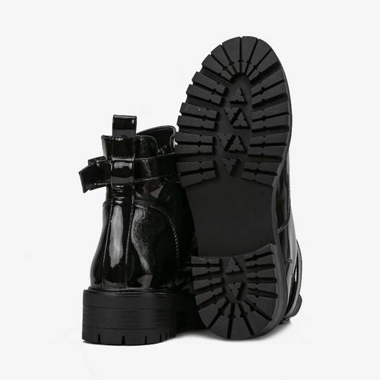 Découvrez les bottines Fossa vernies noires uniques - le choix parfait pour les femmes qui souhaitent ajouter un caractère rock à leur style. Fabriqués en cuir écologique, ces ouvriers offrent un confort et un look tendance pour les journées plus froides.