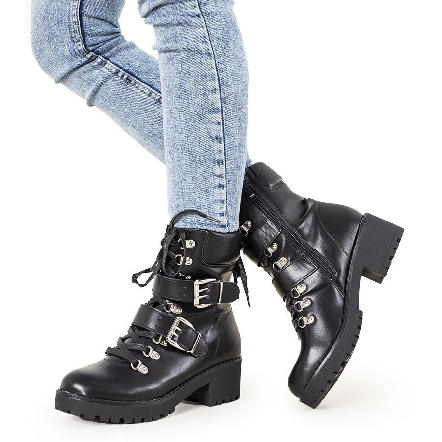 La tige ornée de rayures et d'œillets argentés pour les lacets attire le regard et ajoute de l'originalité. Grâce à la numérotation standard (36-41), vous pourrez facilement les ajuster à votre taille. Les bottes ont un bout rond pour plus de confort et un talon plat de 5 cm en font le choix parfait pour un usage quotidien.