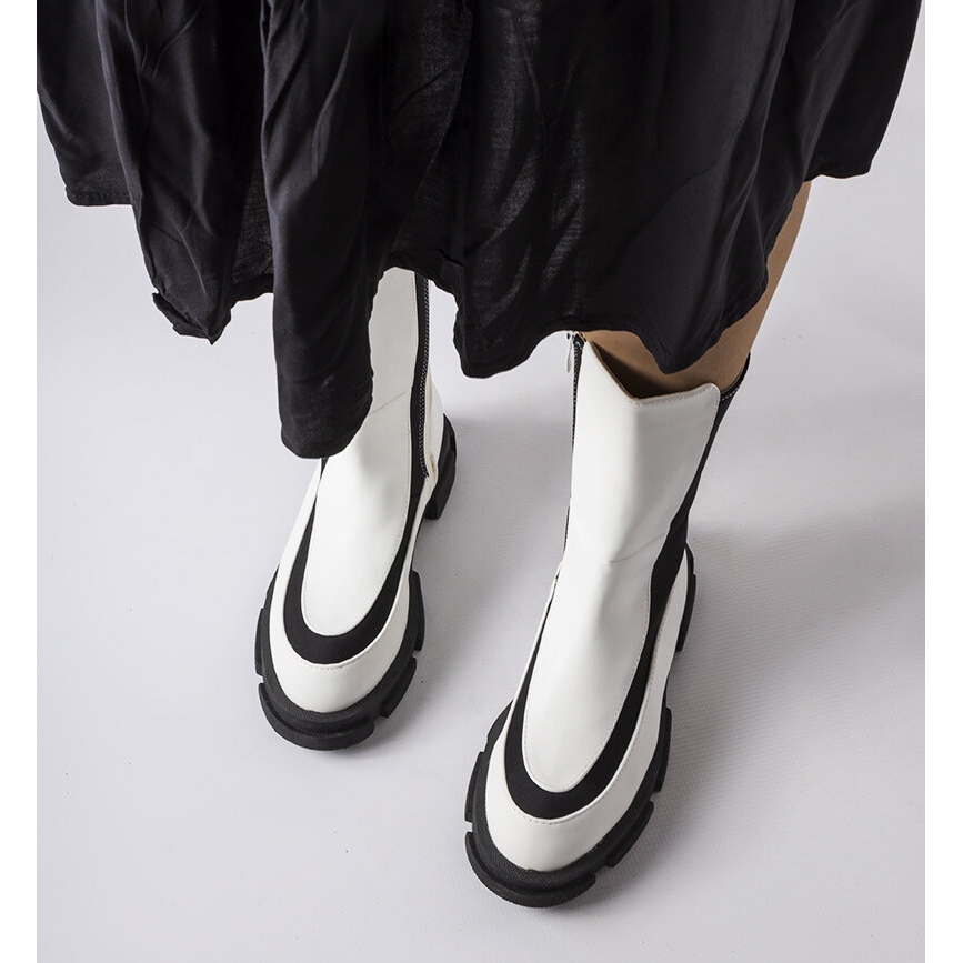 Les bottines Gontin blanches sont des chaussures d'hiver pour femme, parfaites pour un usage quotidien. Fabriqués en cuir écologique résistant à l'humidité et à la neige, ils garantissent chaleur et confort. Elles sont dotées d'une fermeture éclair pratique qui facilite l'enfilage et le retrait des chaussures. Le look moderne et tendance des bottes est assuré par un bout rond et une plateforme caractéristique de 4 cm de haut. La largeur de la tige est de 15 cm, tandis que la hauteur des bottes est de 28 cm. Les chaussures ont une semelle en caoutchouc noir qui offre une bonne adhérence même sur des surfaces glissantes. Le modèle de démarrage OM718 est proposé dans l'emballage d'origine du fabricant. Sans motifs, de couleur blanche, marqué par le fabricant comme Blanc. Le poids des chaussures avec emballage individuel est de 1,20 kg. La numérotation est standard. Les bottines Gontin blanches font partie de la collection Automne-Hiver d'Inna Marka. Le produit n'a pas de fonctionnalités supplémentaires et son code fabricant est BM179243.