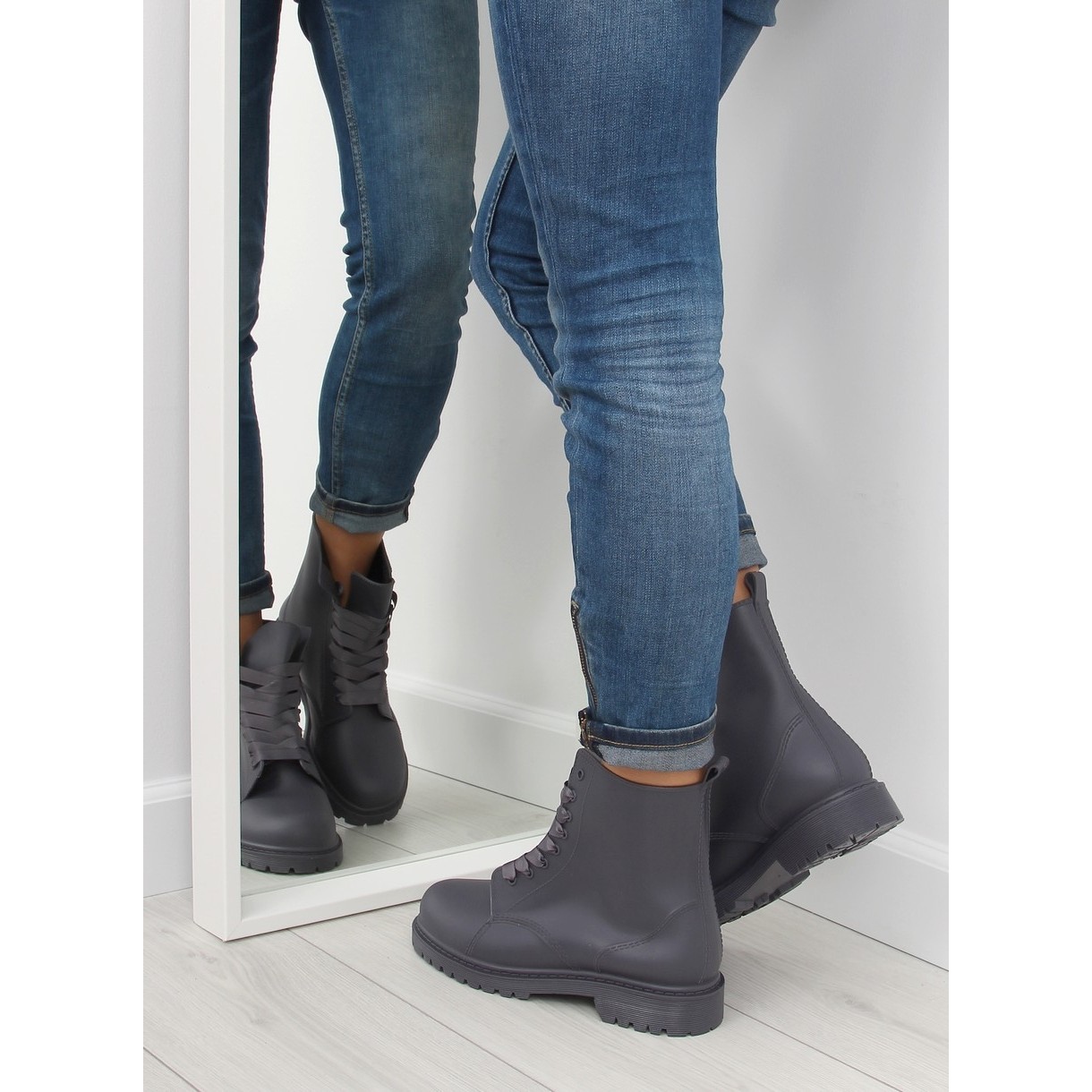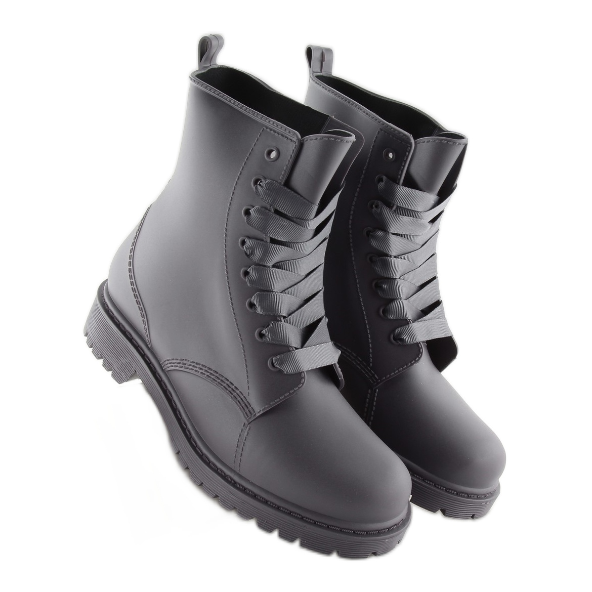 Découvrez les bottes à lacets dans la couleur grise tendance D56P gray - la combinaison parfaite de style et de fonctionnalité ! Ces bottes Wellington uniques pour femmes allient un design militaire distinctif à la praticité, ce qui en fait une solution parfaite pour les jours de pluie.