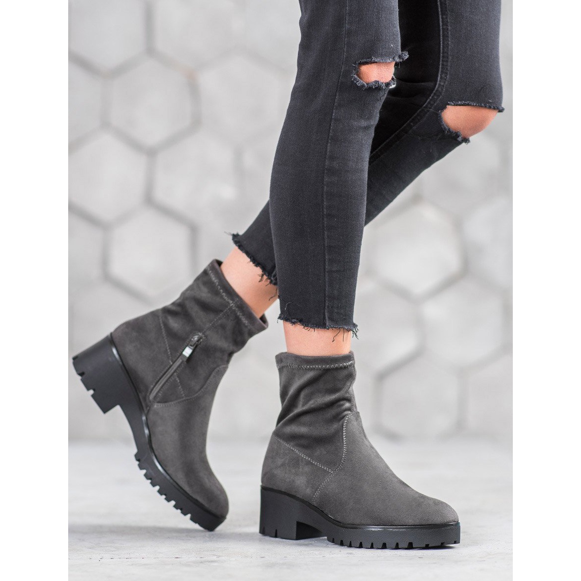 Ajoutez un peu de style et de confort à votre garde-robe avec les bottines SHELOVET en gris. Ces chaussures pour femmes à la mode et pratiques sont fabriquées en daim écologique de haute qualité, ce qui les rend non seulement esthétiques, mais aussi respectueuses de l'environnement. Grâce à la semelle solide avec bande de roulement, vous pourrez profiter du confort et de la stabilité pendant la marche.