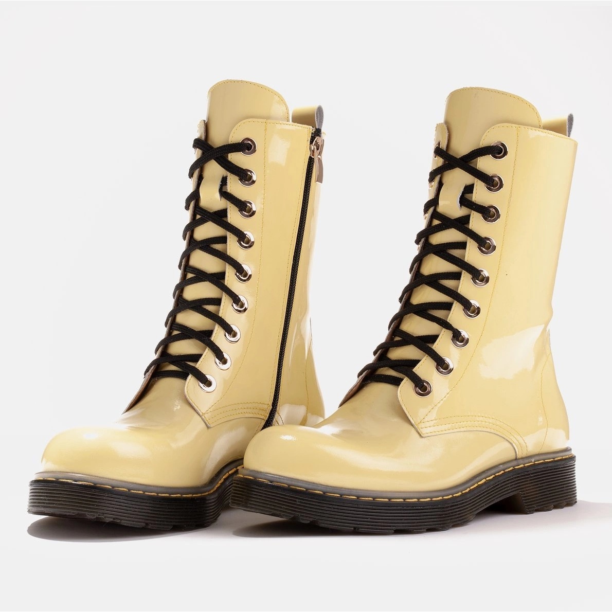 Détails: Marco Shoes Bottines hautes, bottines nouées sur une semelle translucide jaune