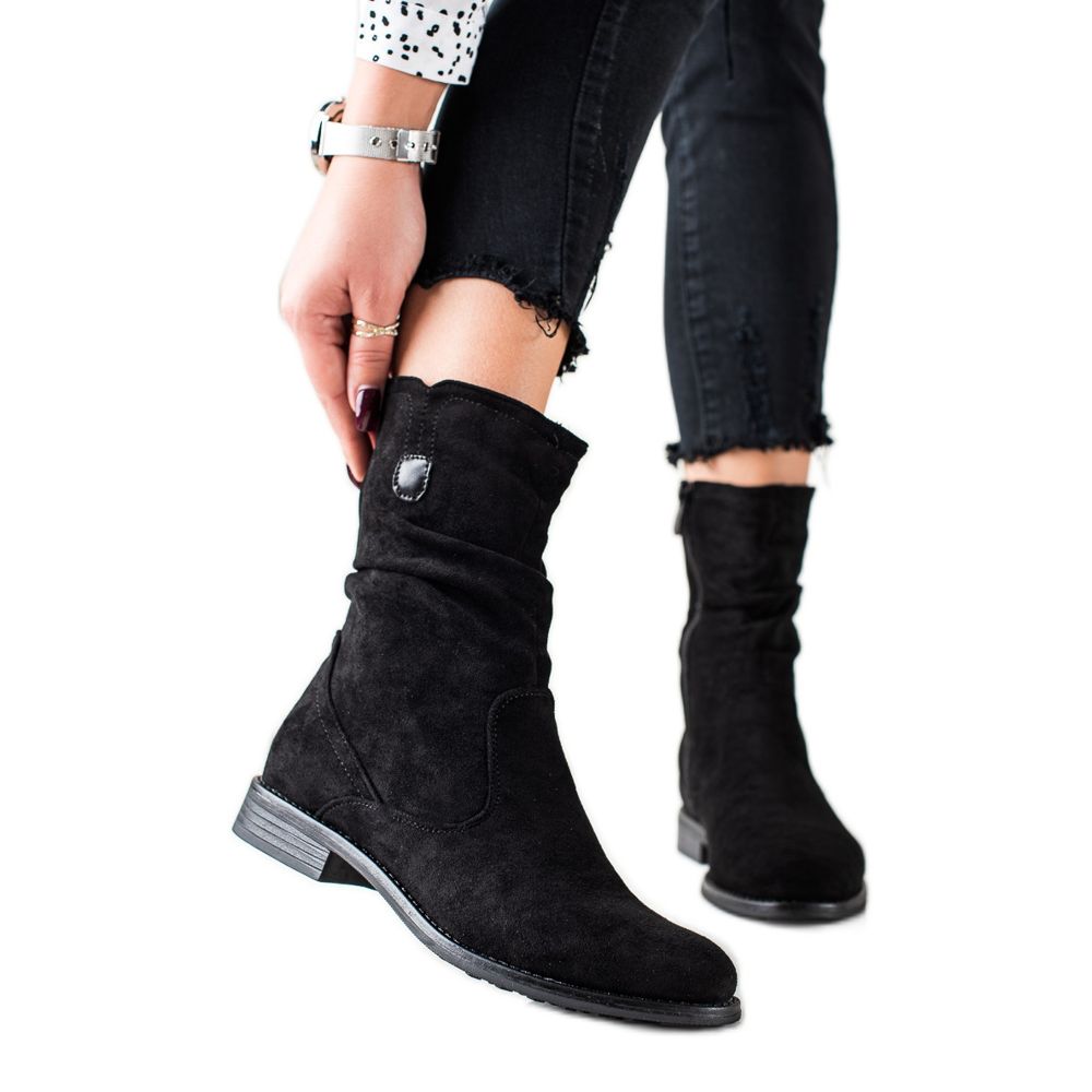 Les bottes hautes en daim de W. Potocki sont un choix élégant pour toutes les femmes qui veulent avoir du style et se sentir à l'aise en automne et en hiver. Fabriquées en imitation daim de haute qualité, ces bottines noires allient un design classique à des accents modernes.