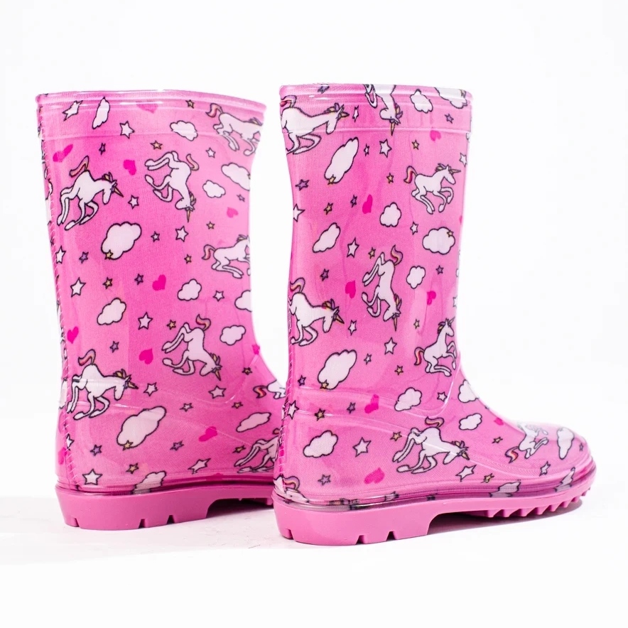 Des bottes pratiques et charmantes pour les filles qui travailleront tous les jours de pluie. Fabriqués en caoutchouc durable dans une couleur rose à la mode avec un motif, ils offrent une protection contre l'humidité et le confort lorsqu'ils jouent à l'extérieur.