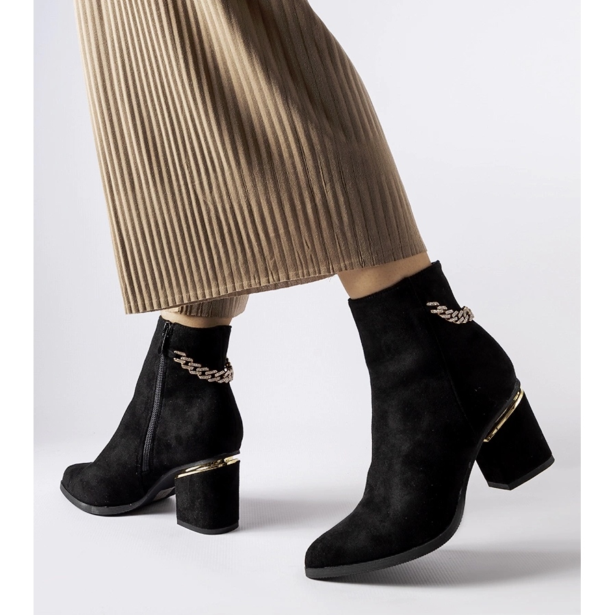 Les bottes classiques, féminines et expressives - Hiney sont une proposition pour les personnes qui apprécient le style et le confort. Le nez d'épices caractéristique leur donne un caractère élégant, et les strass et la chaîne décoratifs mettent subtilement l'accent sur le look. Un piston stable avec une hauteur de 7 cm assure le confort toute la journée, et la serrure le rend plus facile à mettre.