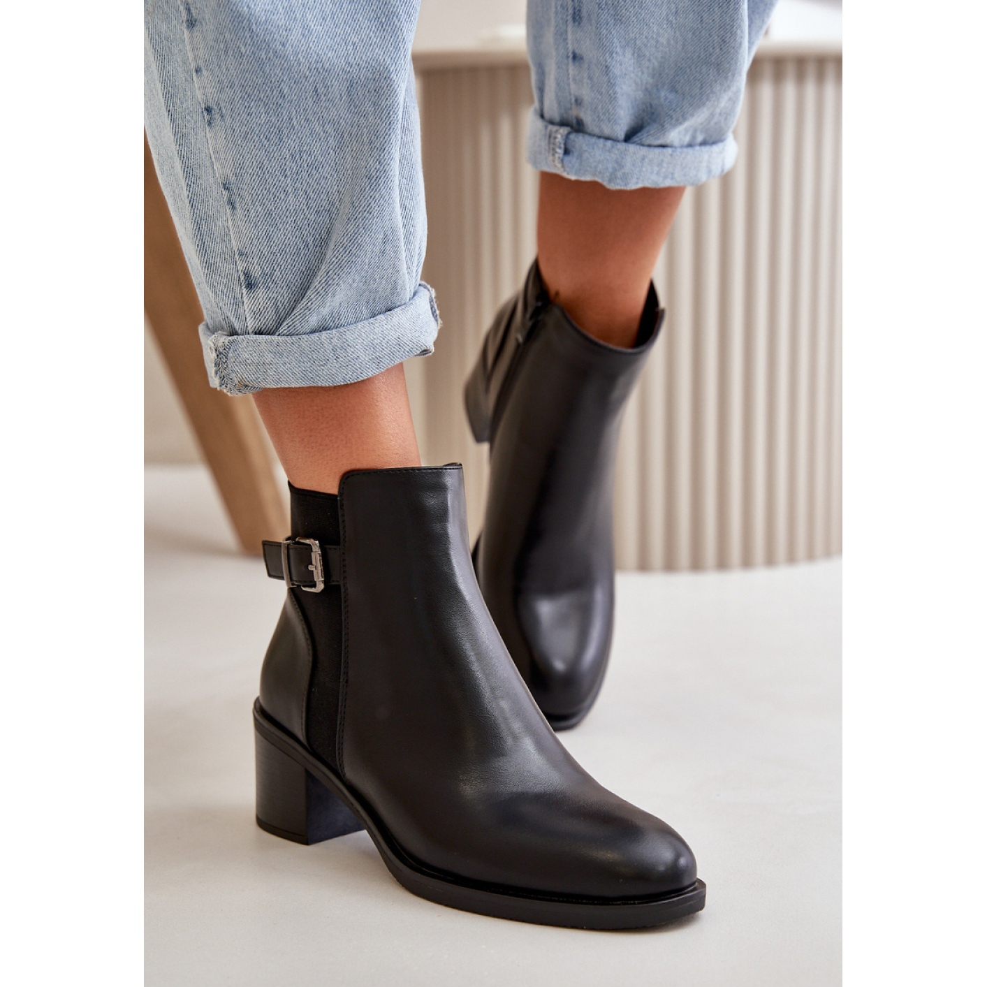 L'intérieur des bottes a été isolé avec une couverture de chaussures, ce qui assure un confort thermique adéquat, même les jours les plus froids. La fixation de zip pratique le rend plus facile à mettre et à décoller, tout en vous permettant de correspondre parfaitement à la forme du pied. Un avantage supplémentaire est le détail élégant sous la forme d'une sangle de pince, qui leur donne un personnage de mode.