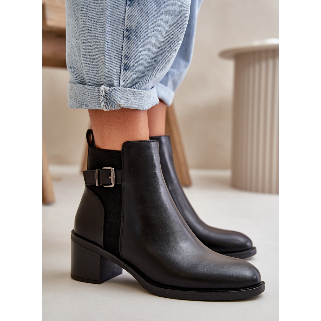 Les bottes féminines isolées sur un poteau de pince noir sont le choix parfait pour les jours plus frais. Fabriqué en cuir écologique de haute qualité, combinez le style avec confort, ce qui en fait un complément parfait à chaque style d'automne et d'hiver.