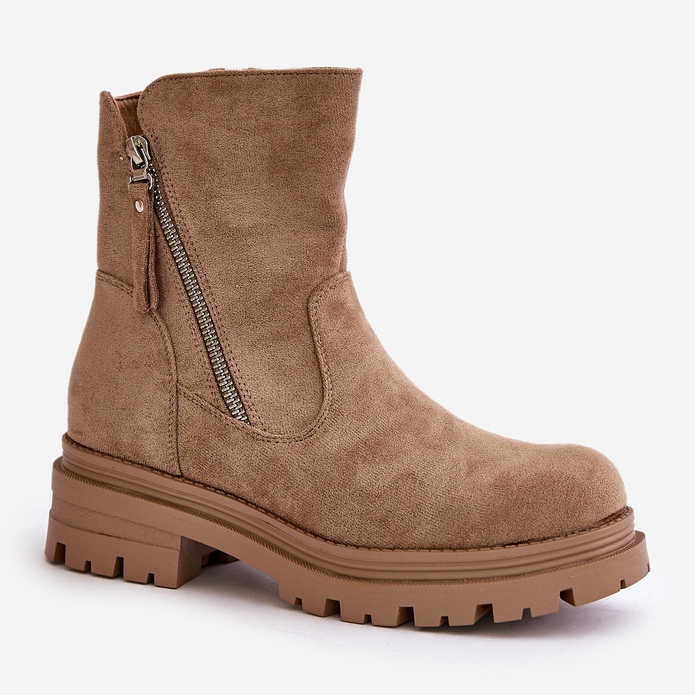 Détails: Bottines isolées à talon plat en éco-daim, beige Reloma