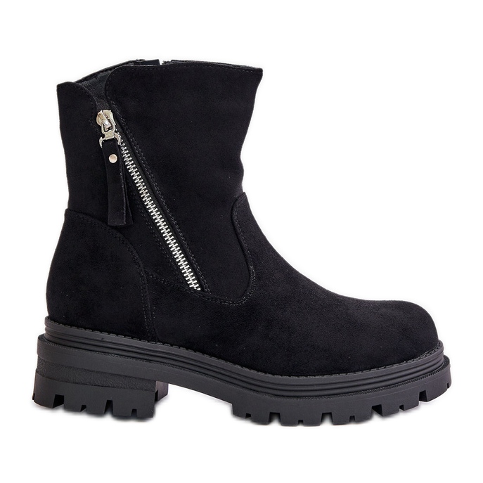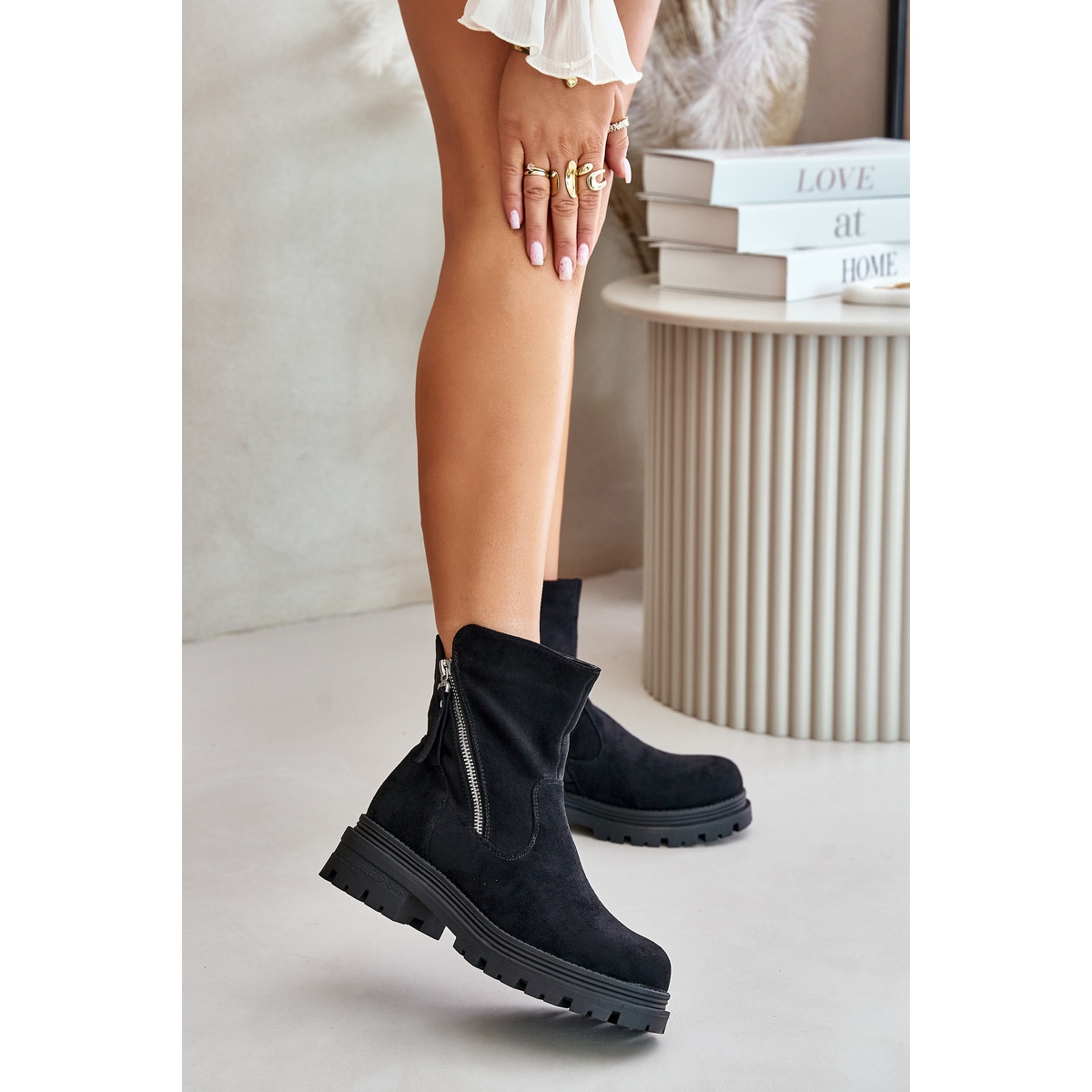 Bottines isolées à talon plat en éco-daim, Noir Reloma