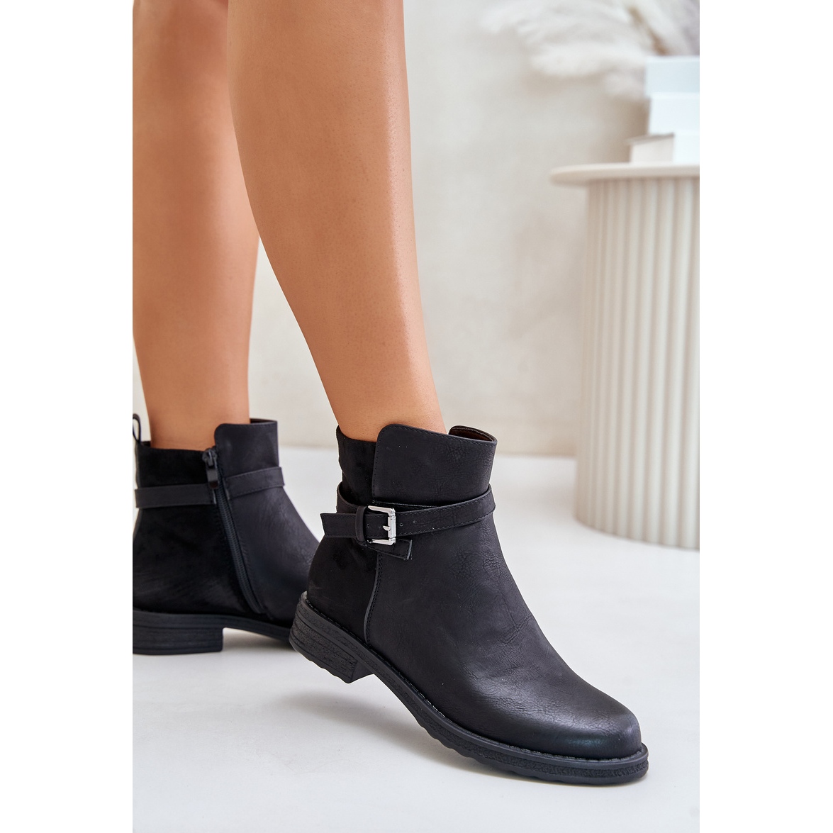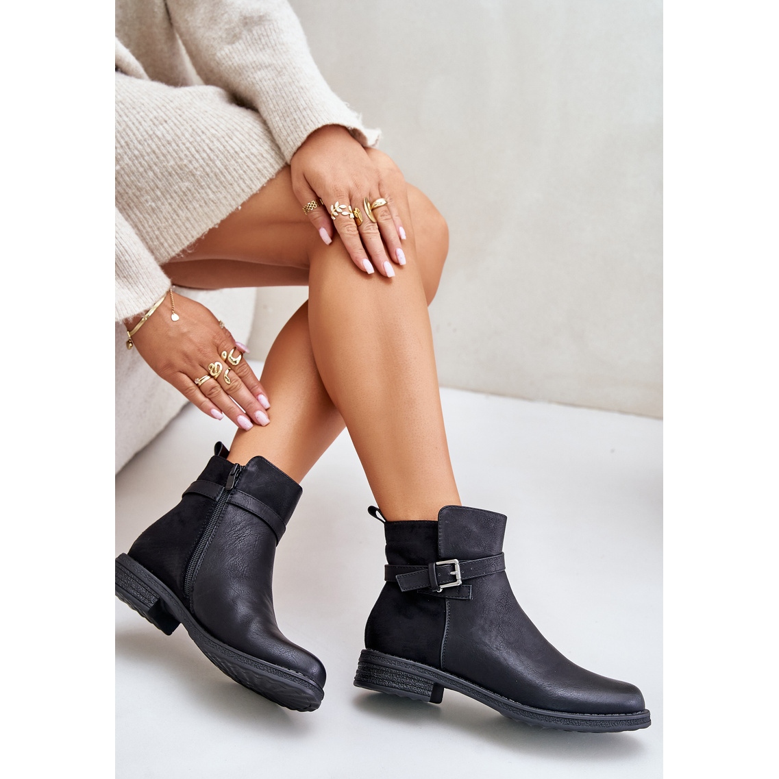 Le bout rond et la silhouette arrondie donnent aux bottes un look classique, tandis que la sangle élégante avec une boucle sur la tige est un complément tendance à l'ensemble, ajoutant une élégance subtile. Les bottes sont disponibles dans un noir élégant, ce qui les rend faciles à combiner avec différents styles.