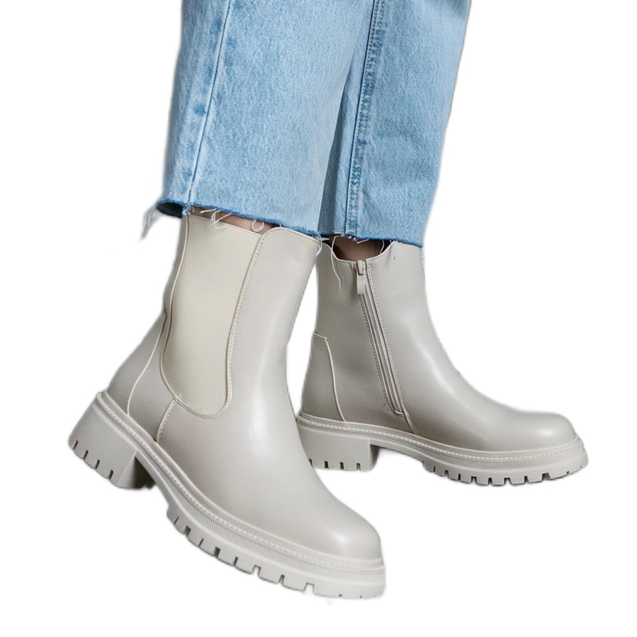Détails: Bottines isolées beiges avec fermeture éclair, éco-cuir