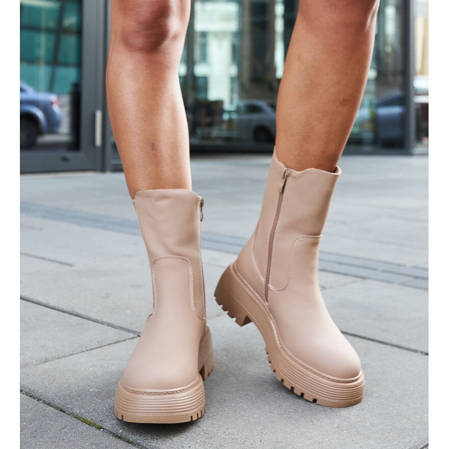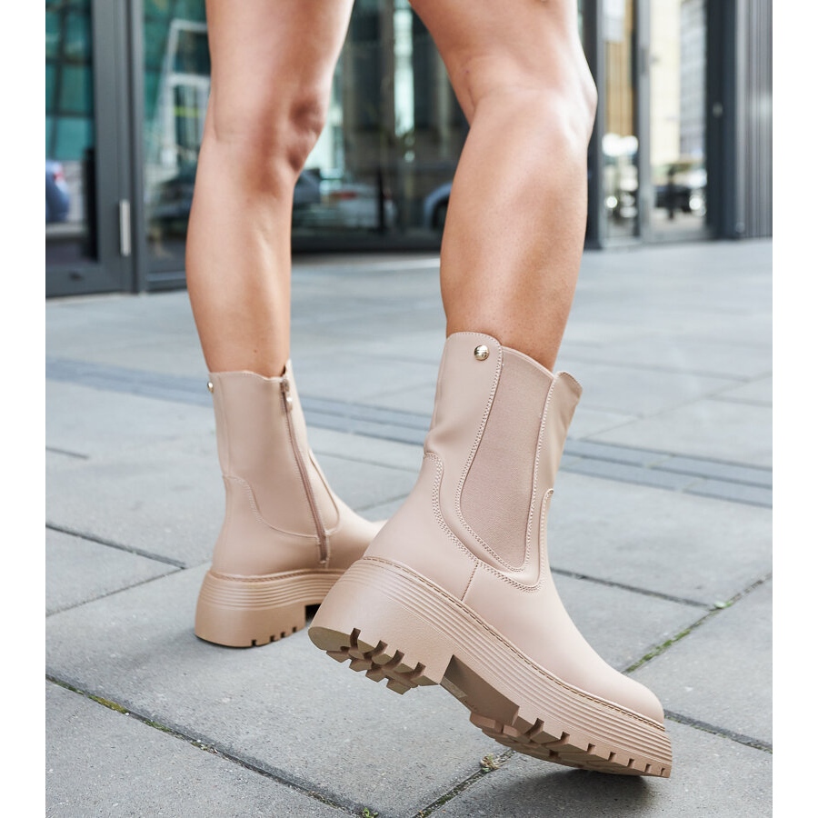 Bottes isolées beige sur la plate-forme Rinaldo (modèle JJ17P)