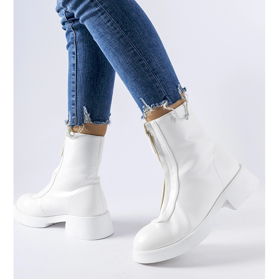 Classique, élégant et extrêmement confortable - ces bottines de cheville féminines en blanc sont une proposition idéale pour l'automne et le printemps. Fabriqué en cuir biologique, avec un réchauffement et une fermeture éclair pratique, ils combinent le style avec les fonctionnalités - ils fonctionneront quotidiennement et pendant les jours plus frais.
