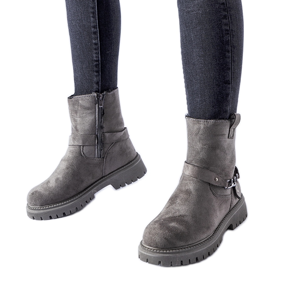 Détails: Bottines isolées grises avec chaîne Sedico
