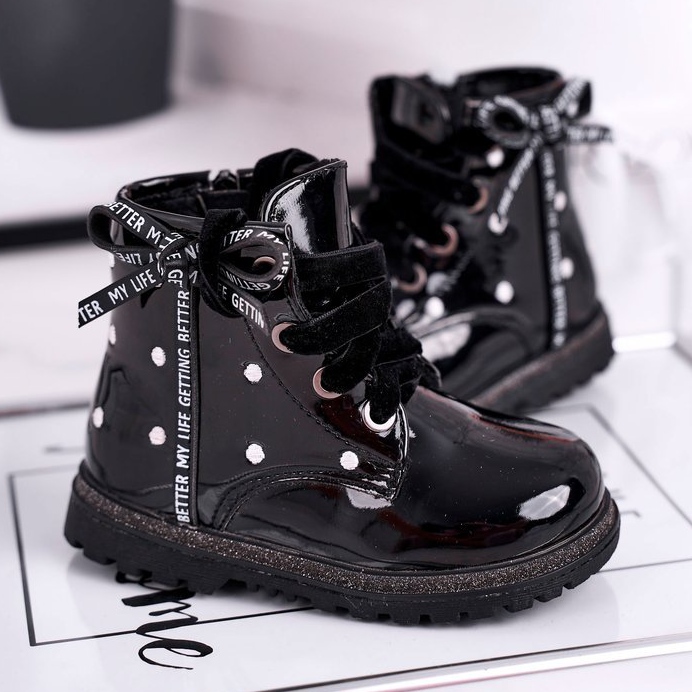 Détails: Bottines isolées laquées noires pour enfants Essie le noir