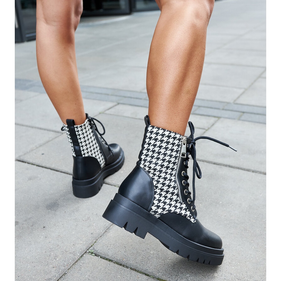 Les bottes isolantes noires Alfeo à motif pied-de-poule sont des chaussures pour femmes qui complèteront parfaitement votre garde-robe d'hiver. Le dessus des bottes est en cuir écologique. Les bottes ont une semelle en caoutchouc noir qui assure durabilité et stabilité même sur une surface glissante. Le motif pied-de-poule ajoute un caractère unique aux chaussures.