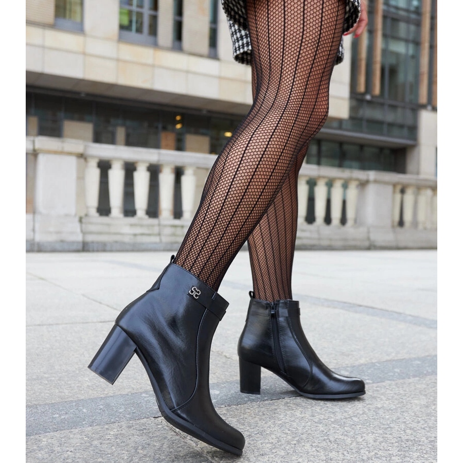 Élégant et pratique - Les bottes Barreto combinent le design à la mode avec le confort de porter. Le haut en cuir écologique noir décoré de zircons subtils donne un style de chaussures et un personnage universel, qui convient à la fois tous les jours et plus les stylisations initiales. Le bout des amandes et un talon stable sur un pilier de 6 cm de haut offrent un look élégant sans abandonner le confort.