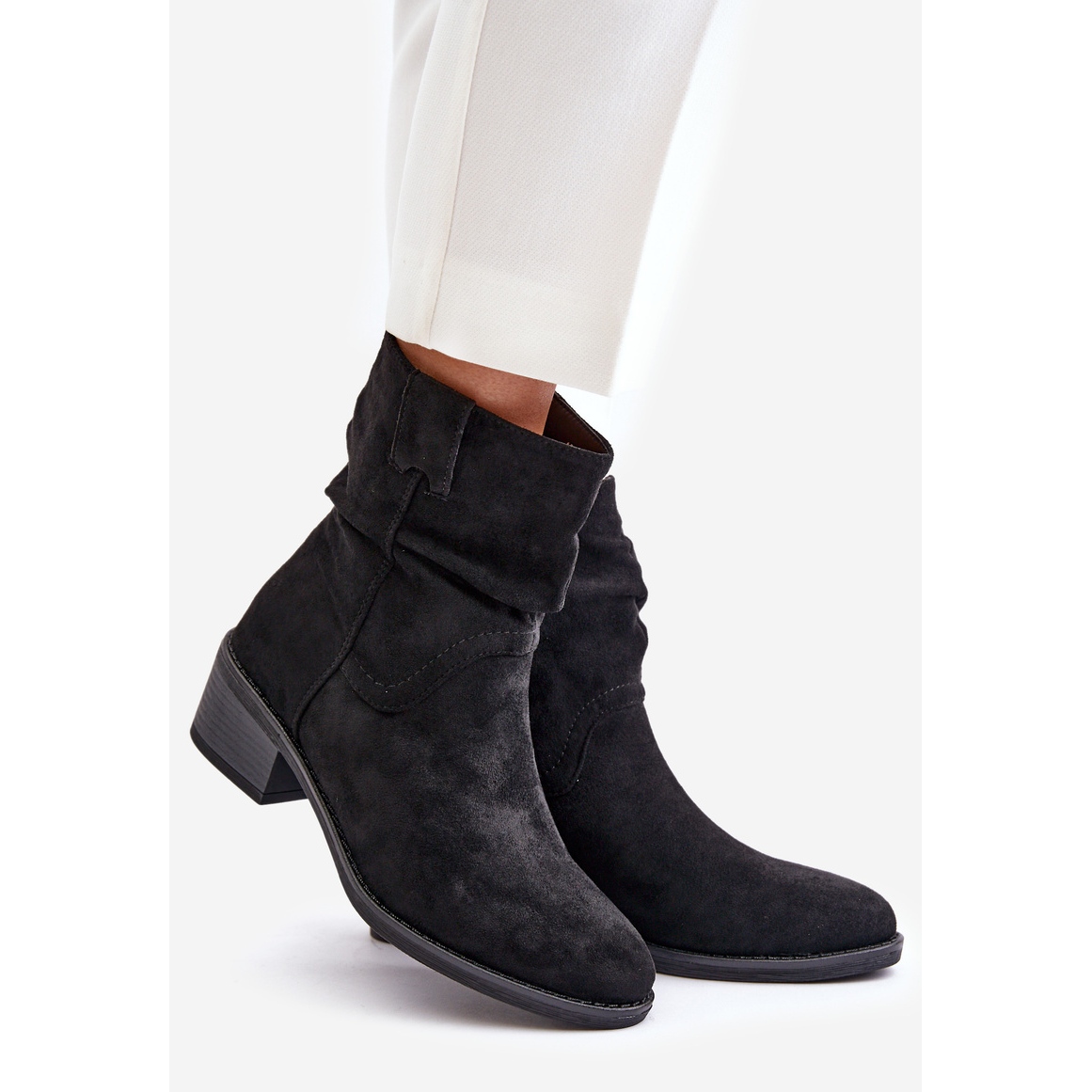 Les bottines isolées pour femmes avec un talon bas supérieur froncé, noires, sont le choix parfait pour les femmes qui apprécient à la fois le confort et le style. Ces bottines classiques, fabriquées en éco-daim de haute qualité, s'intégreront parfaitement à une variété de styles, du décontracté à l'élégant.
