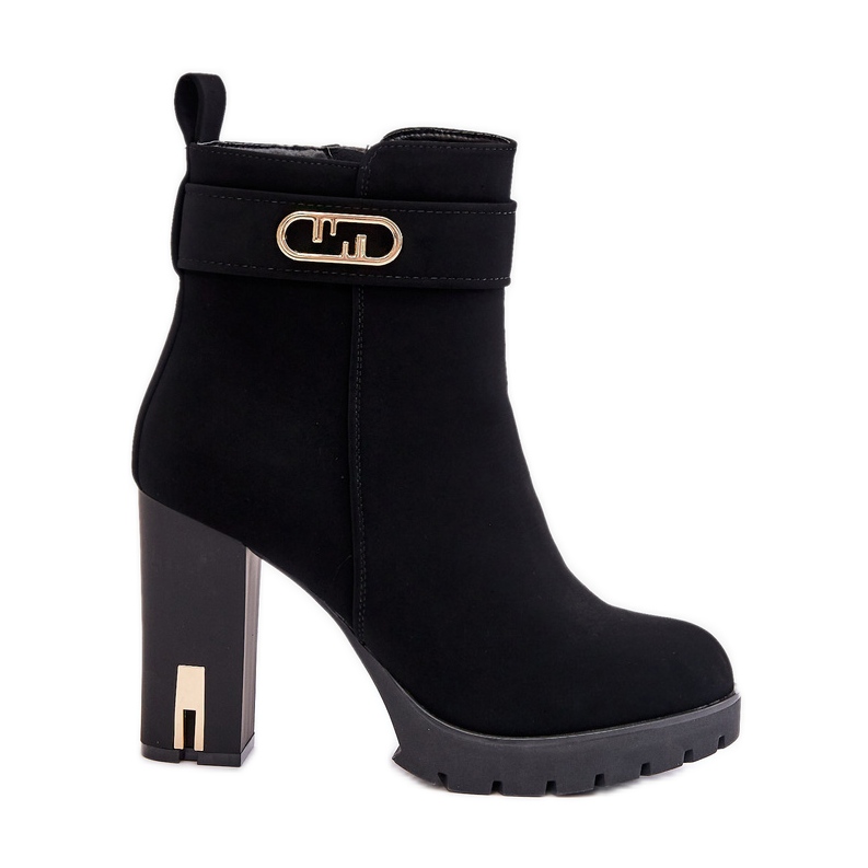 Le talon sous la forme d'un poteau de 10 cm de haut assure la stabilité et le confort, et l'isolation avec une couverture de chaussures garantit la chaleur même pendant les plus grandes gelées. Le centre de la chaussure est soigneusement fini et la tige a été décorée d'une ceinture subtile avec un détail doré, ce qui leur donne un caractère unique.